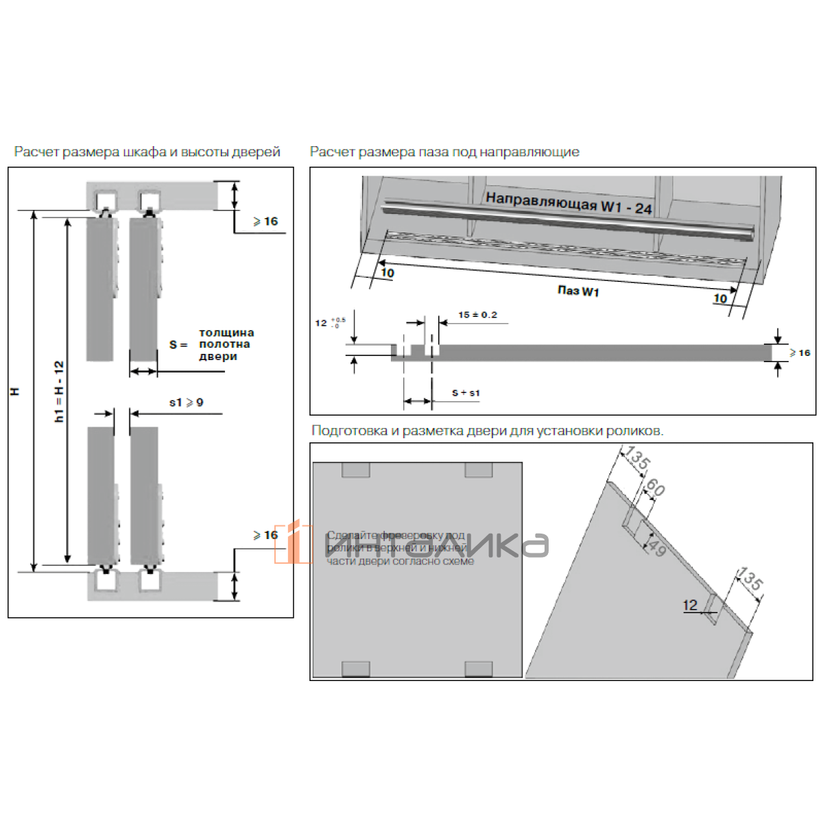 Тип монтажа: врезной (ролики и направляющие)