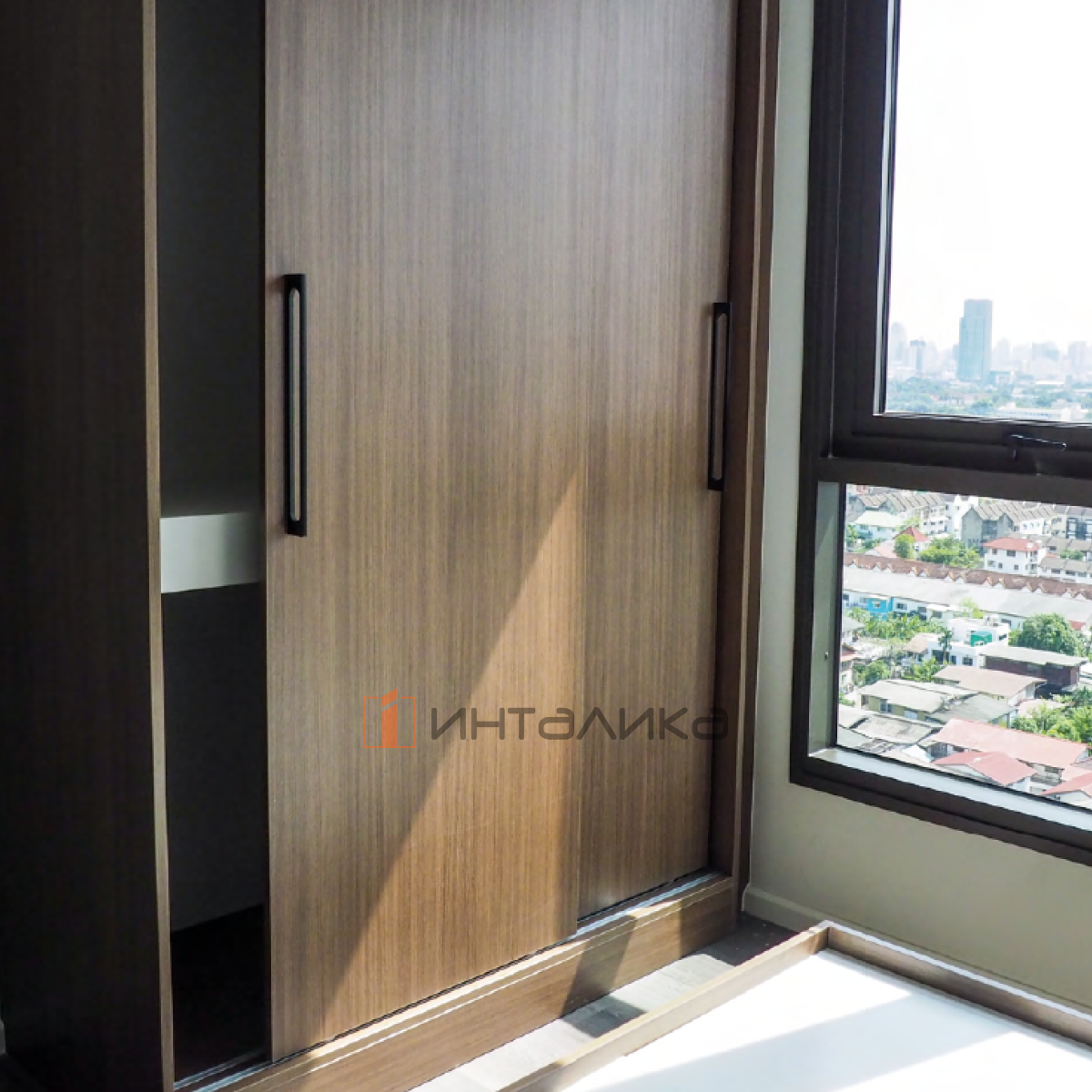 Система FM309 представляет собой универсальное решение для шкафов‑купе с дверями из плитных материалов, при её использовании необязательно применять алюминиевый рамочный профиль