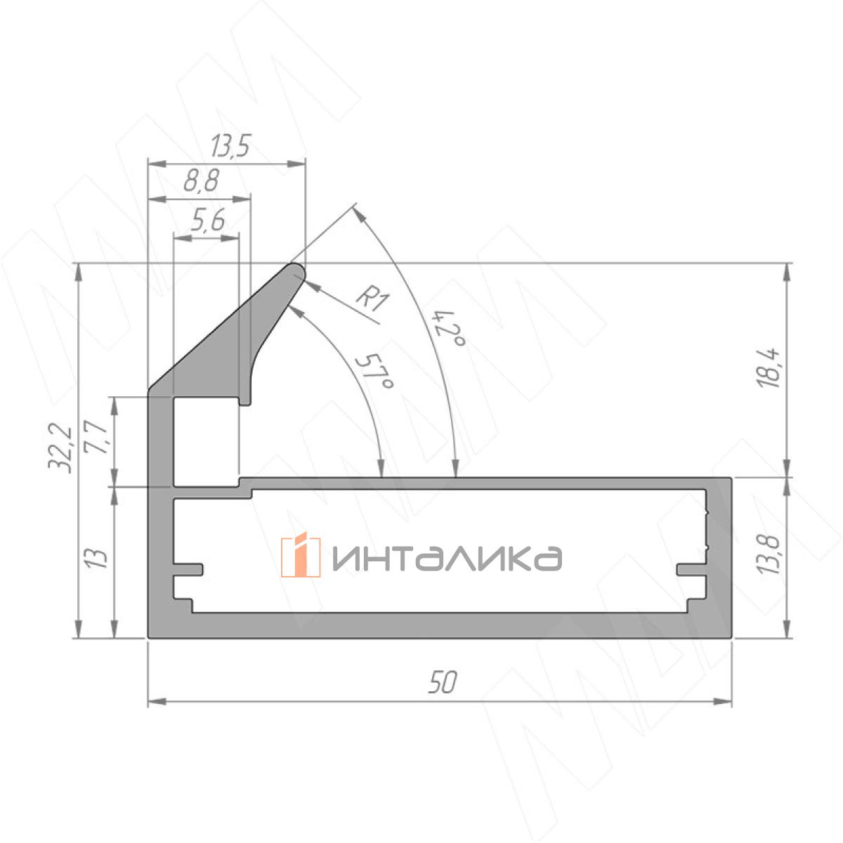 PRIME Профиль рамочный широкий, с наклонной ручкой, серебро (анод), L-3000, FP00296TAL-S3