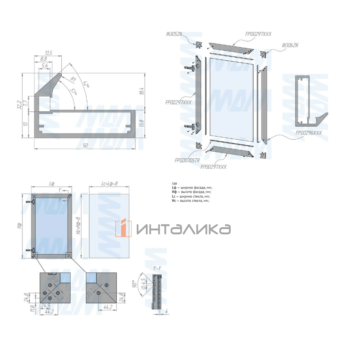 Широкий рамочный профиль предназначен для изготовления мебельных фасадов с ручкой различной высоты.