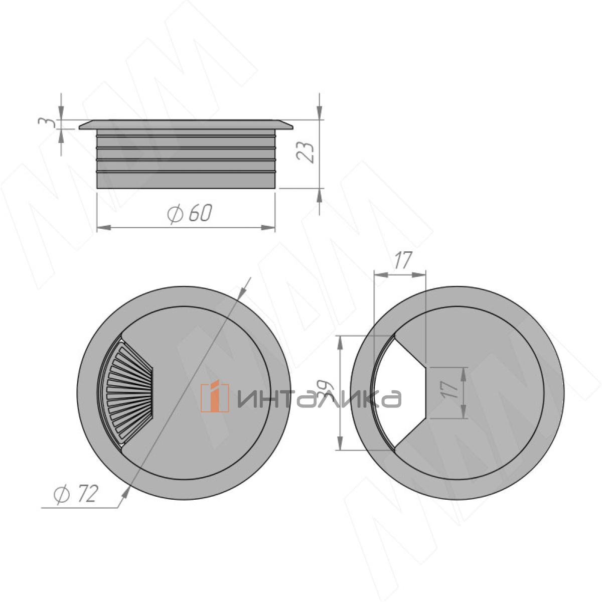 Заглушка кабель-канала, пластиковая, круглая, d=60 мм, серая, RTK-RD-60.GR