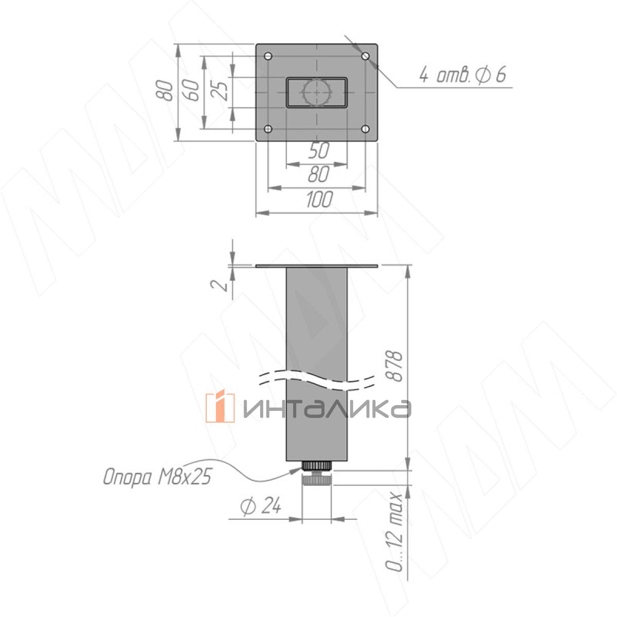 Кордова опора для стола прямоугольная, 50х25мм, H878+12 мм, белый (RAL 9003, муар), KR50X25/870WT