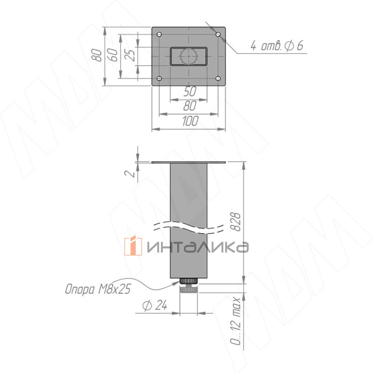 Кордова опора для стола прямоугольная, 50х25мм, H828+12 мм, черный (RAL 9005, муар), KR50X25/820BLC