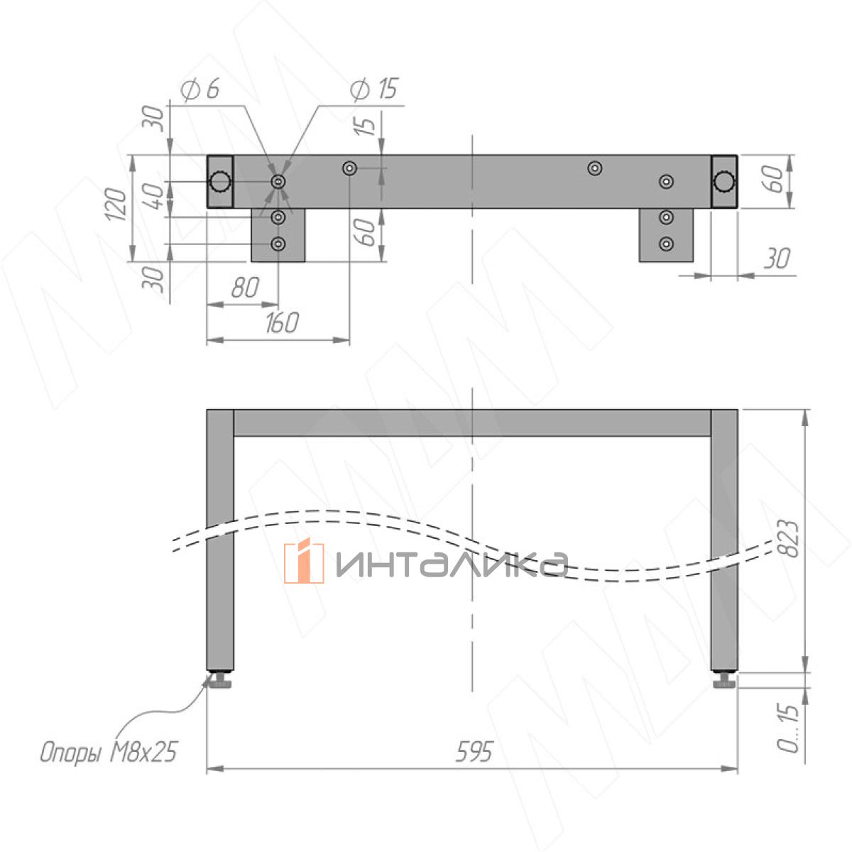 Толедо опора для стола П-образная, 60х30, 595xH823+15 мм, черный (RAL 9005, муар), TL60X30/595X820BLC