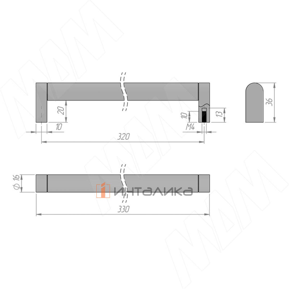 Ручка-рейлинг 320мм нерж. сталь, RH.07.320.BSN