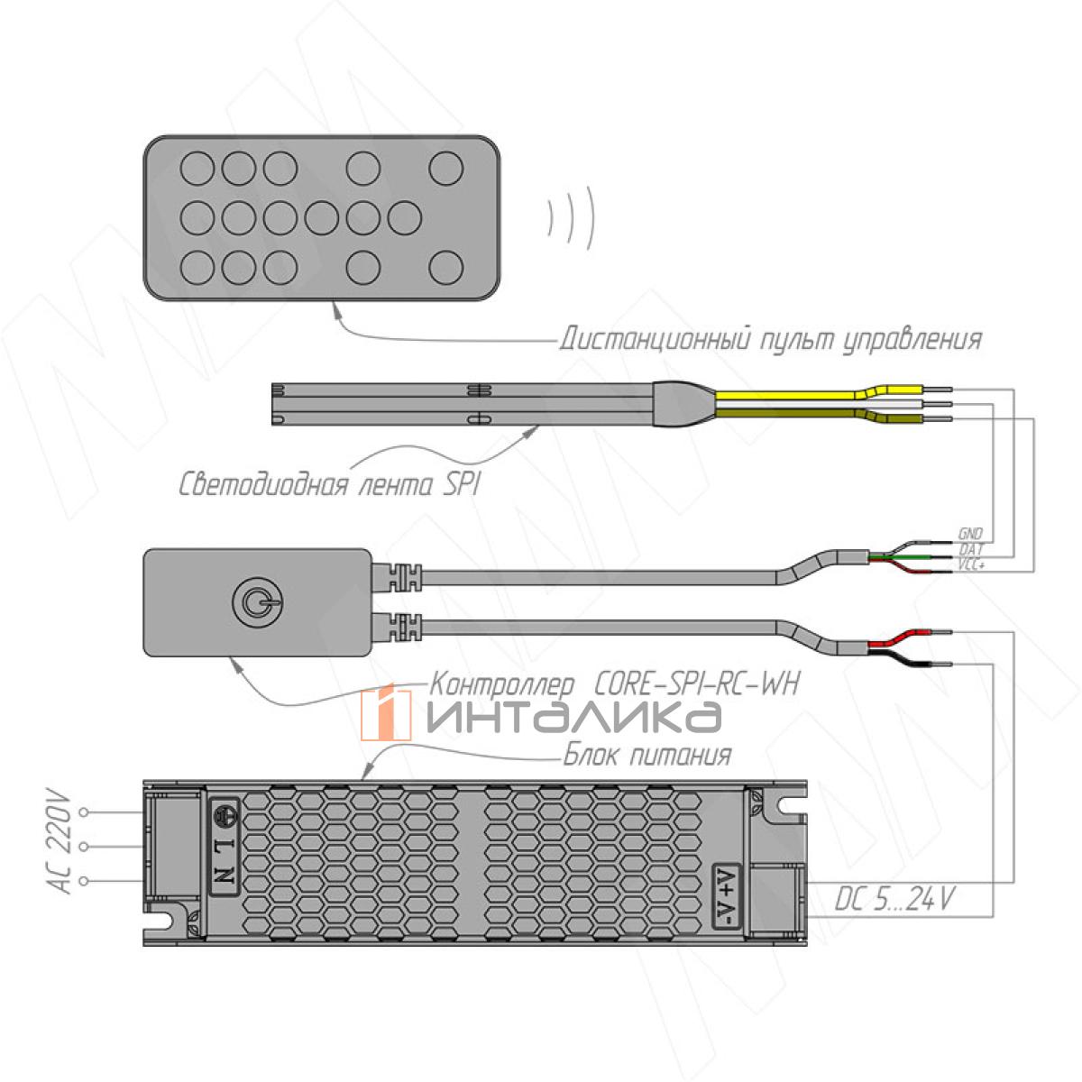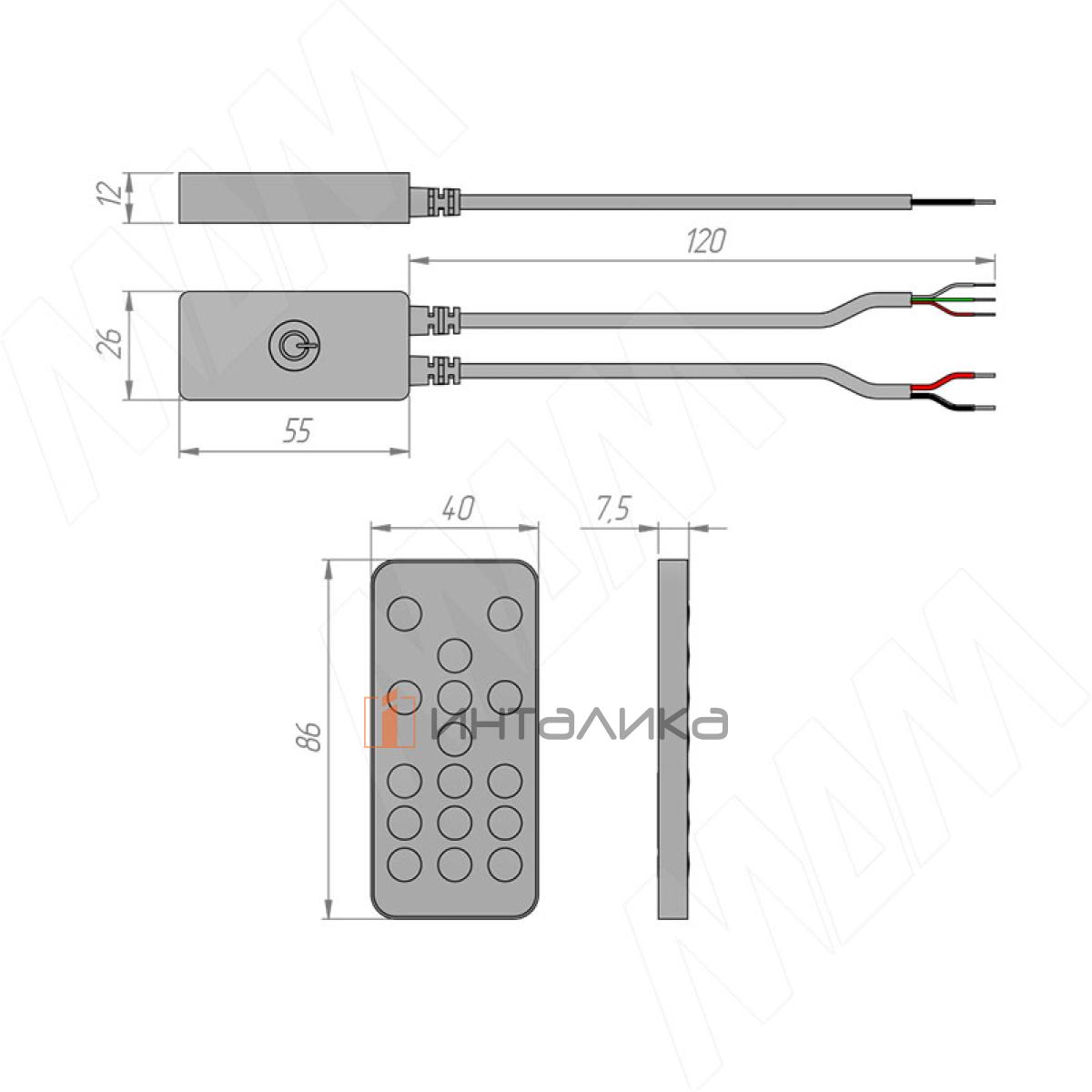 Миниатюрный диммер (контроллер) с радио-пультом ДУ для управления светодиодными лентами SPI