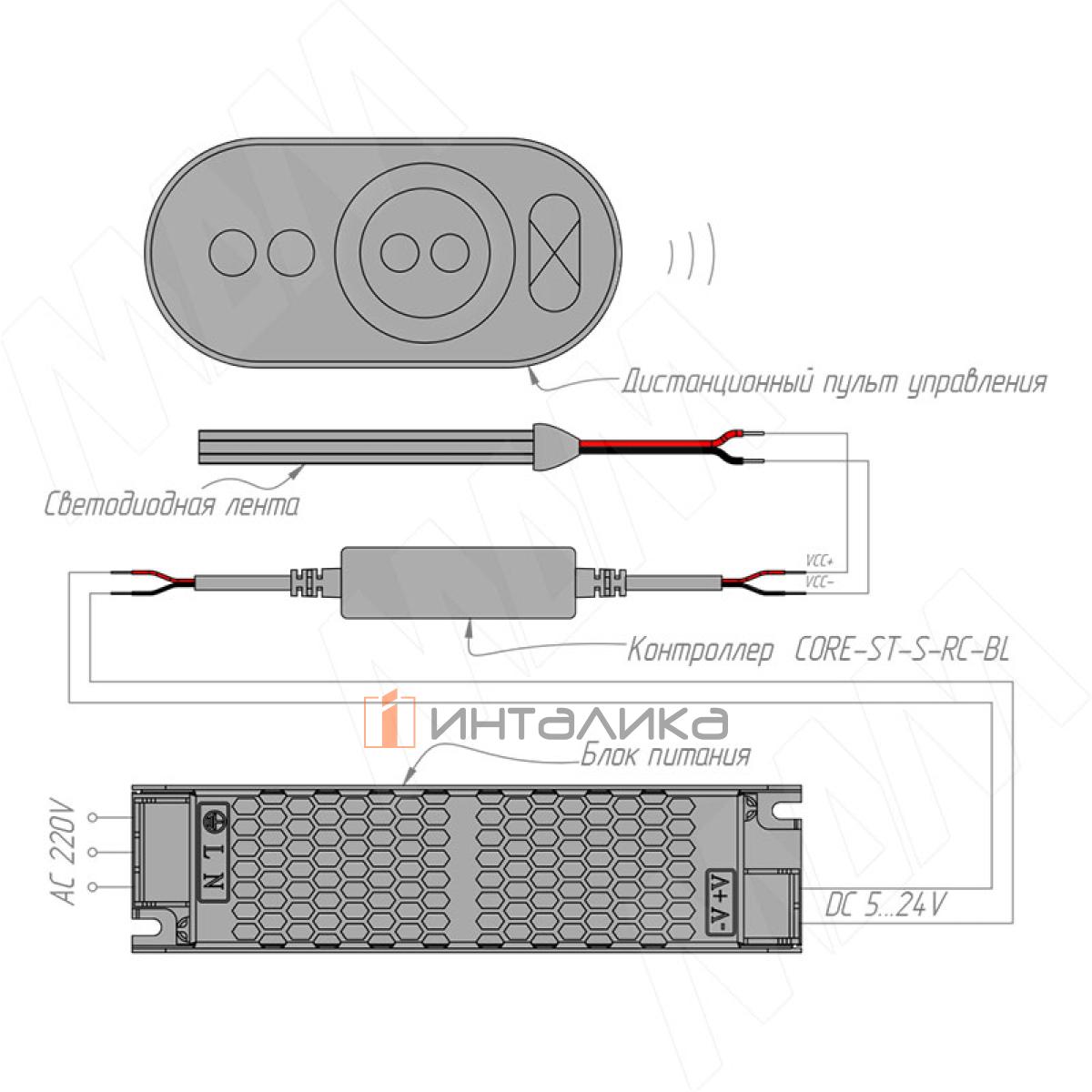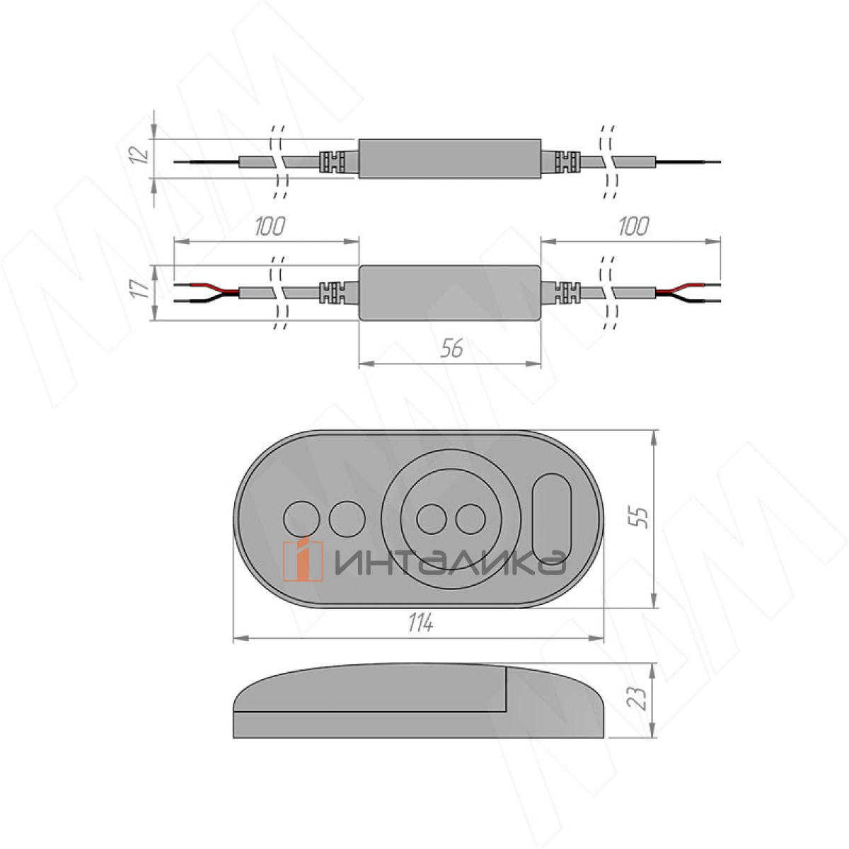 Миниатюрный диммер (контроллер) с радио-пультом ДУ для управления монохромными светодиодными лентами