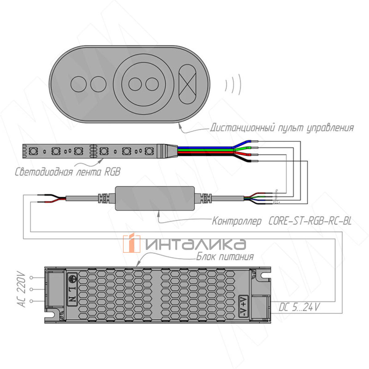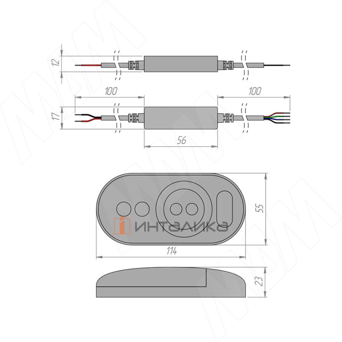 Миниатюрный диммер (контроллер) с радио-пультом ДУ для управления цветными светодиодными лентами (RGB)