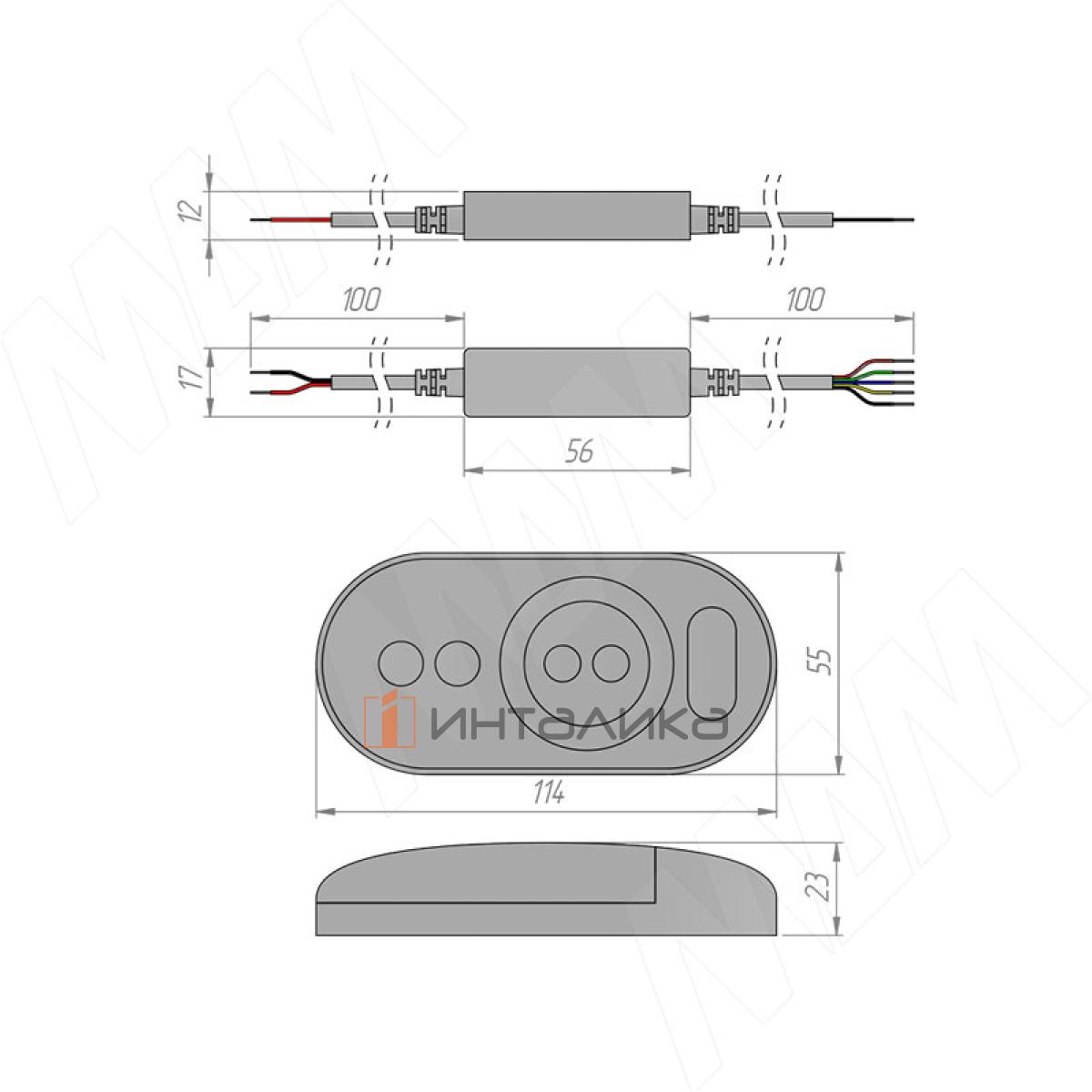 Миниатюрный диммер (контроллер) с радио-пультом ДУ для управления светодиодными лентами RGBW