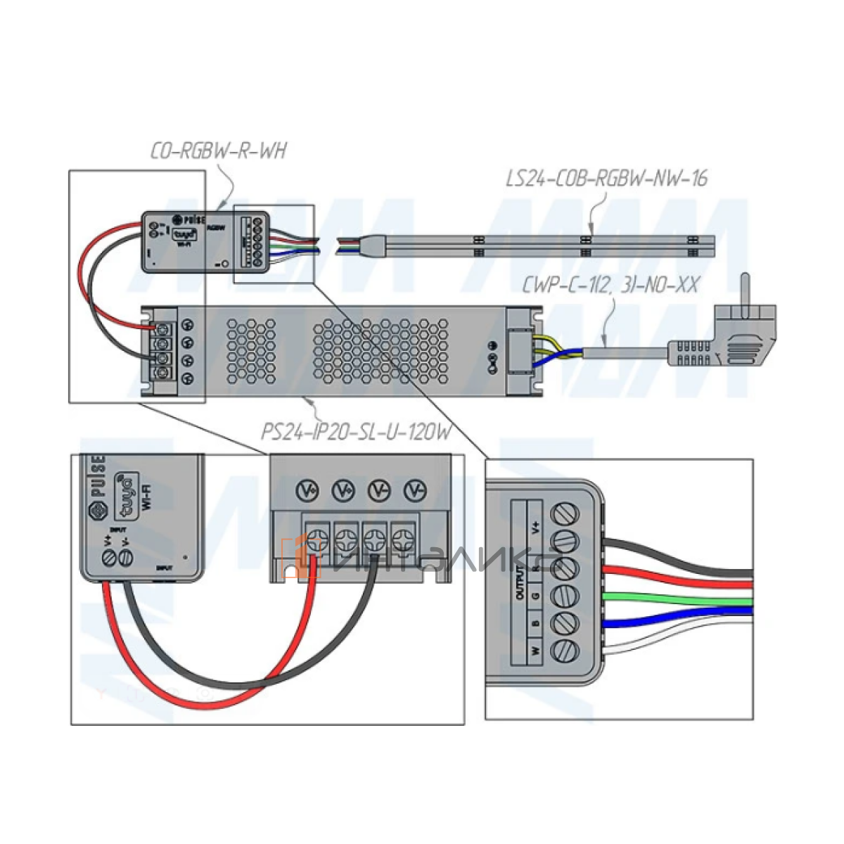 Поддерживаемый тип ленты: RGBW (цветная + белый)