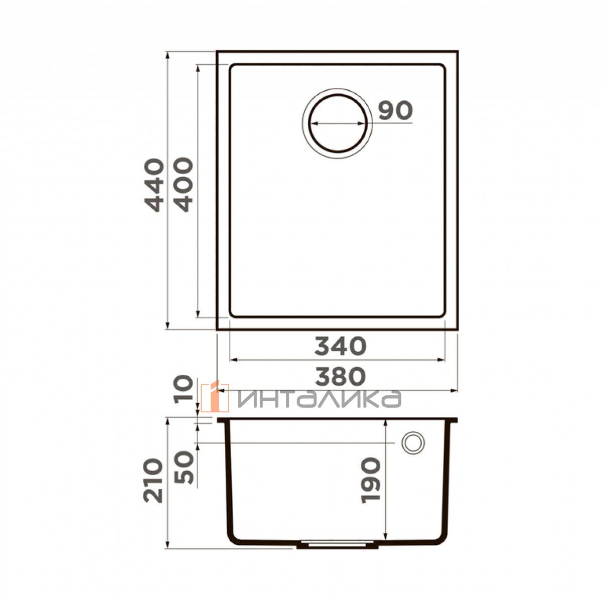 Мойка Omoikiri KATA 74-U Artgranit, 800, под столешницу, черный