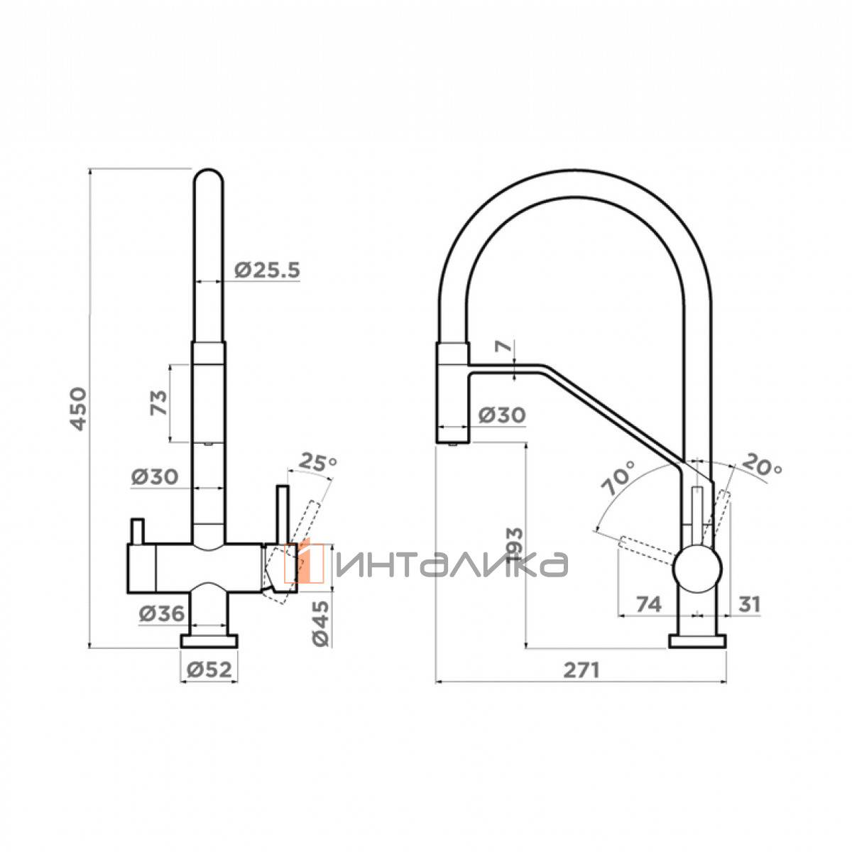Смеситель Omoikiri AKENO однорычажный, с выводом питьевой воды, с гибким шлангом, хром / черный, 4994543