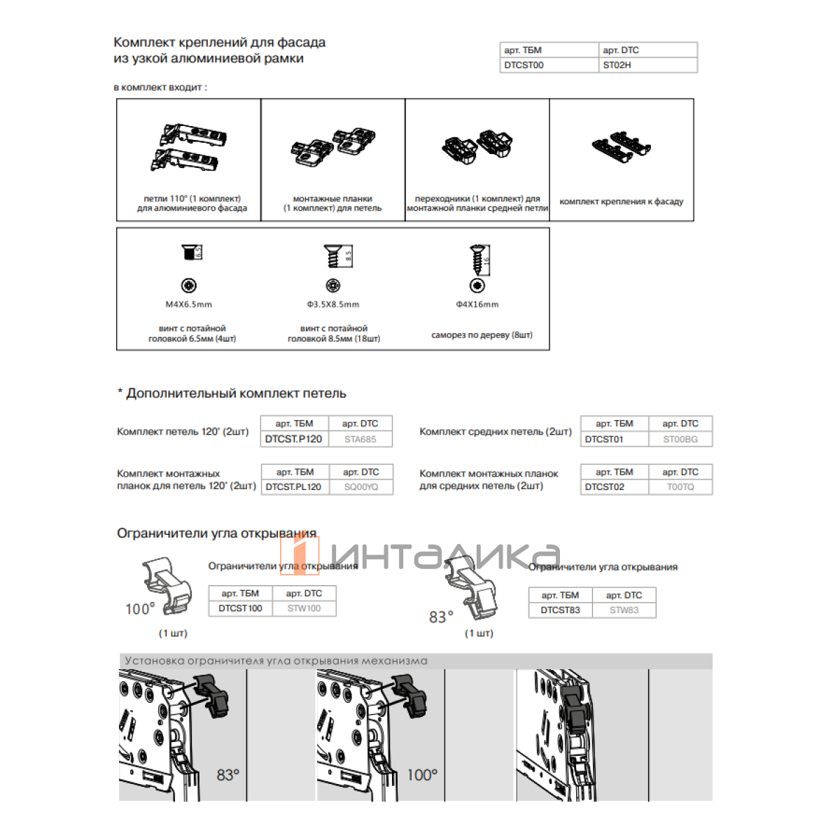 Примечание: в комплекте с механизмом идет комплект петель, весь необходимый крепеж и бумажный шаблон