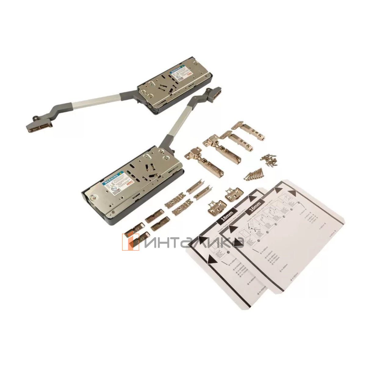 Примечание: в комплекте с механизмом идет комплект петель, весь необходимый крепеж и бумажный шаблон