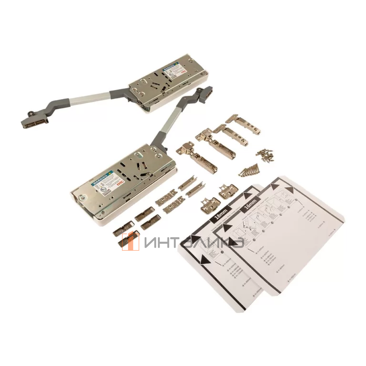 Примечание: в комплекте с механизмом идет комплект петель, весь необходимый крепеж и бумажный шаблон