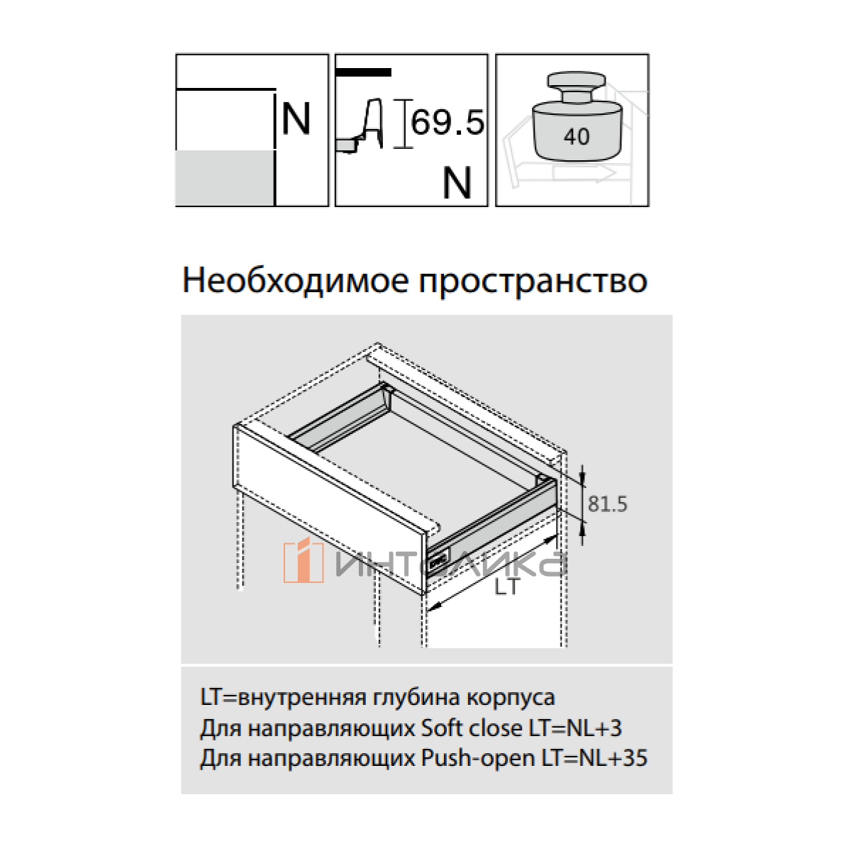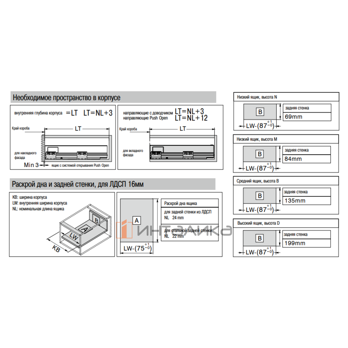 Номинальная длина ящика - 500 мм