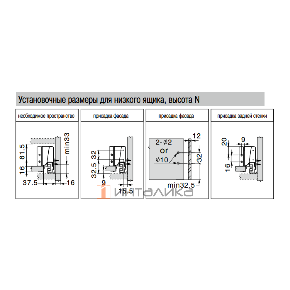 Удобная регулировка фасада в двух плоскостях: по ширине +/- 2,5 мм, по высоте +/- 4 мм