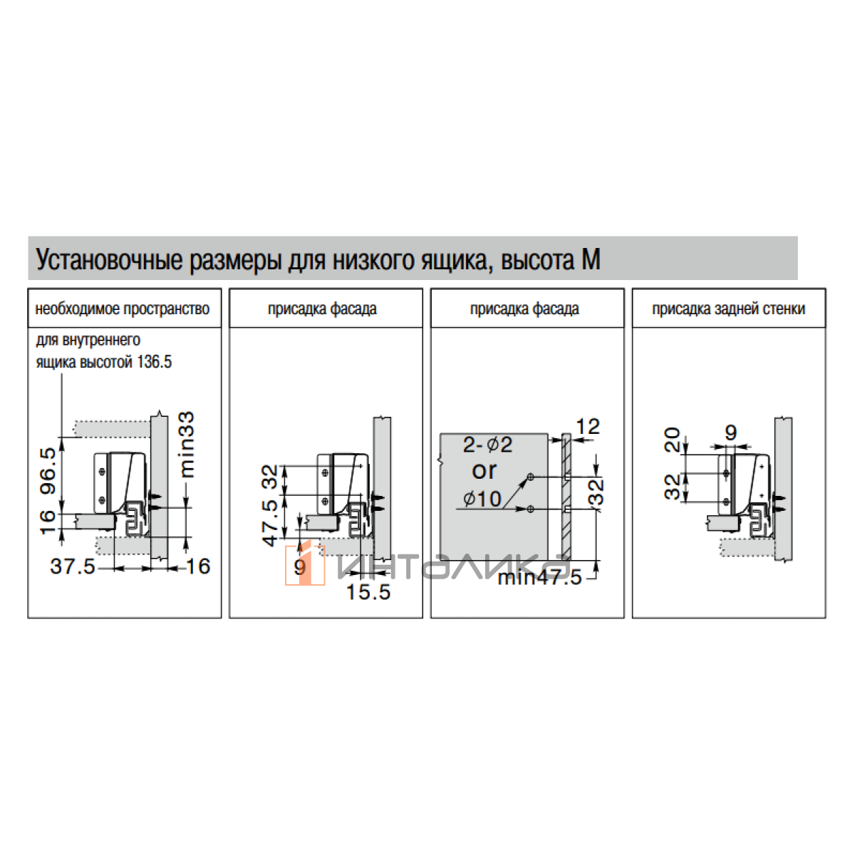 Удобная регулировка фасада в двух плоскостях: по ширине +/- 2,5 мм, по высоте +/- 4 мм