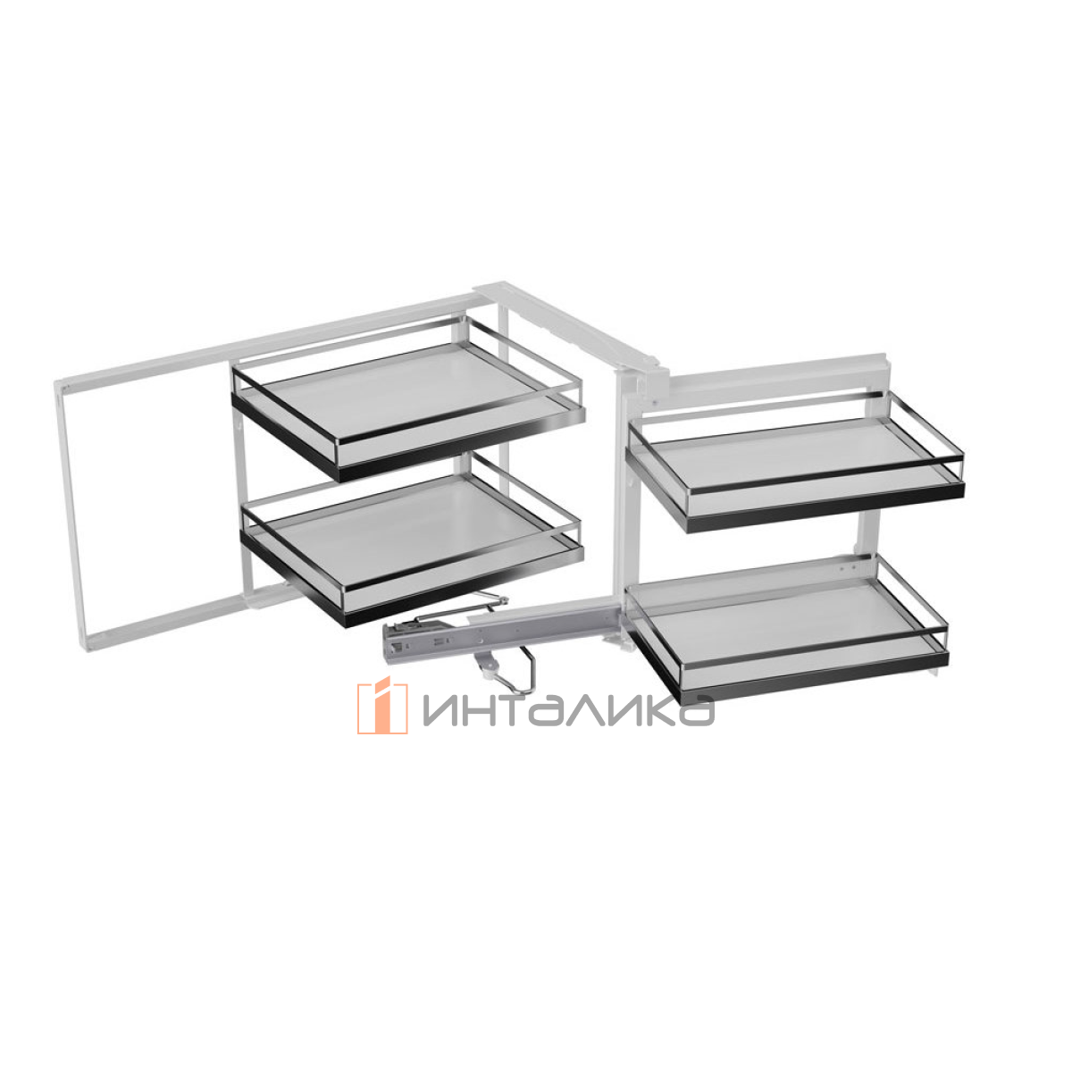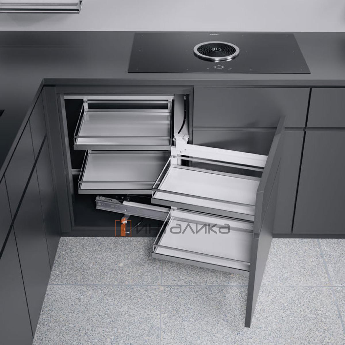 Система выдвижения Волшебный уголок предназначена для установки в угловые тумбы шириной 900 мм