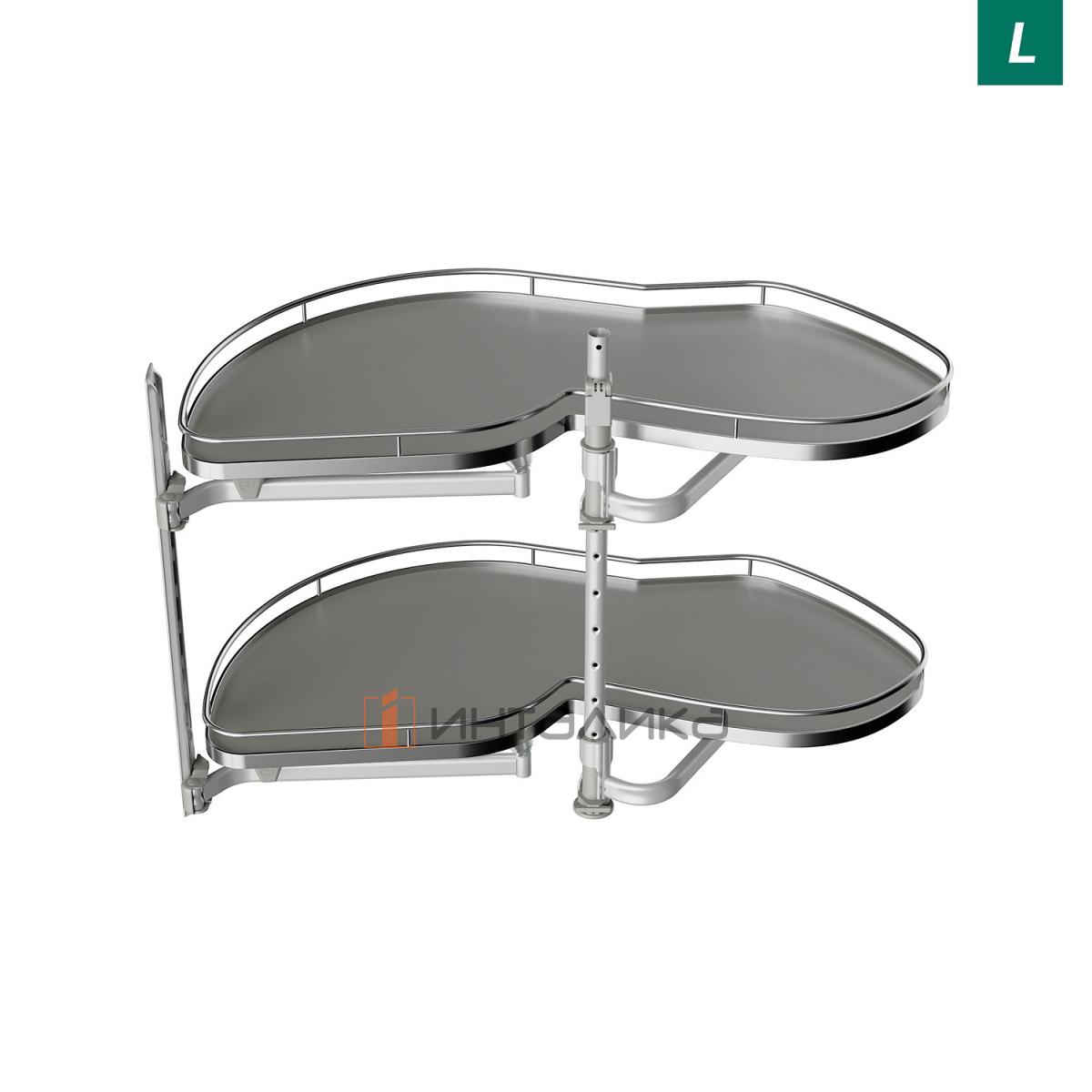 Поворотно-выдвижной механизм KESSEBOHMER Le Mans 450, 2 полки Arena classic с доводчиками на закрывание, Anti-slip, H720-900мм, левый, серый/хром, 0499290005