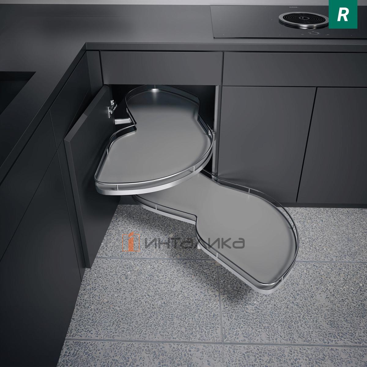 Поворотно-выдвижной механизм KESSEBOHMER Le Mans 450, 2 полки Arena classic с доводчиками на закрывание, Anti-slip, H720-900мм, правый, серый/хром, 0499280005