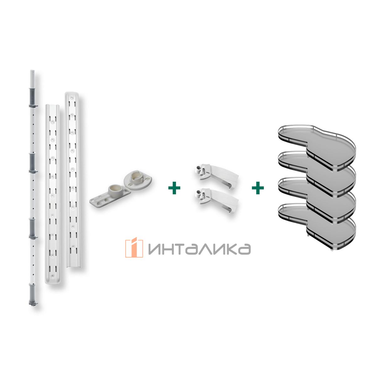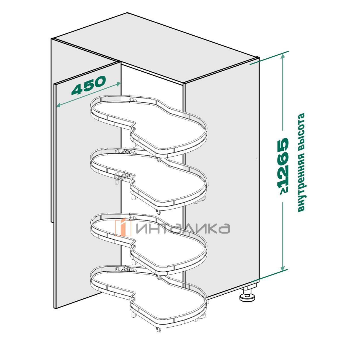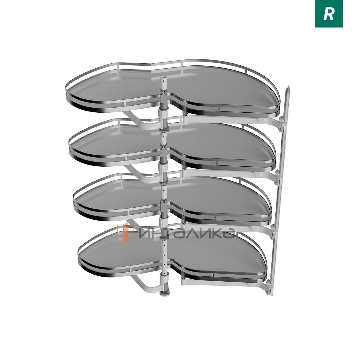 Поворотно-выдвижной механизм KESSEBOHMER Le Mans 450, 4 полки Arena style с доводчиками на закрывание, Anti-slip, H1265мм, правый, белый/хром, 3579600005