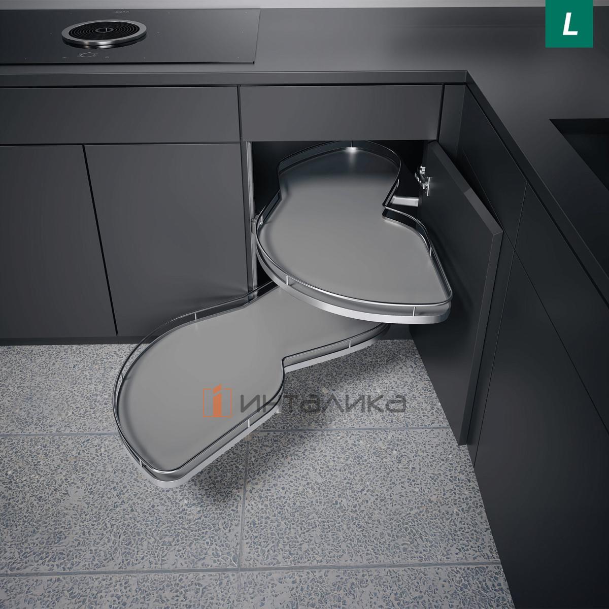 Поворотно-выдвижной механизм KESSEBOHMER Le Mans 500, 2 полки Arena classic с доводчиками на закрывание, Anti-slip, H720-900мм, левый, серый/хром, 0499310005