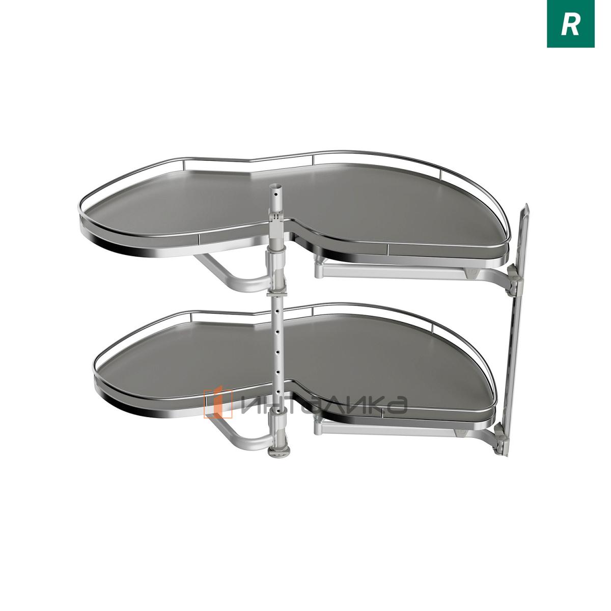 Поворотно-выдвижной механизм KESSEBOHMER Le Mans 500, 2 полки Arena style с доводчиками на закрывание, Anti-slip, H600-750мм, правый, белый/хром, 3579300005