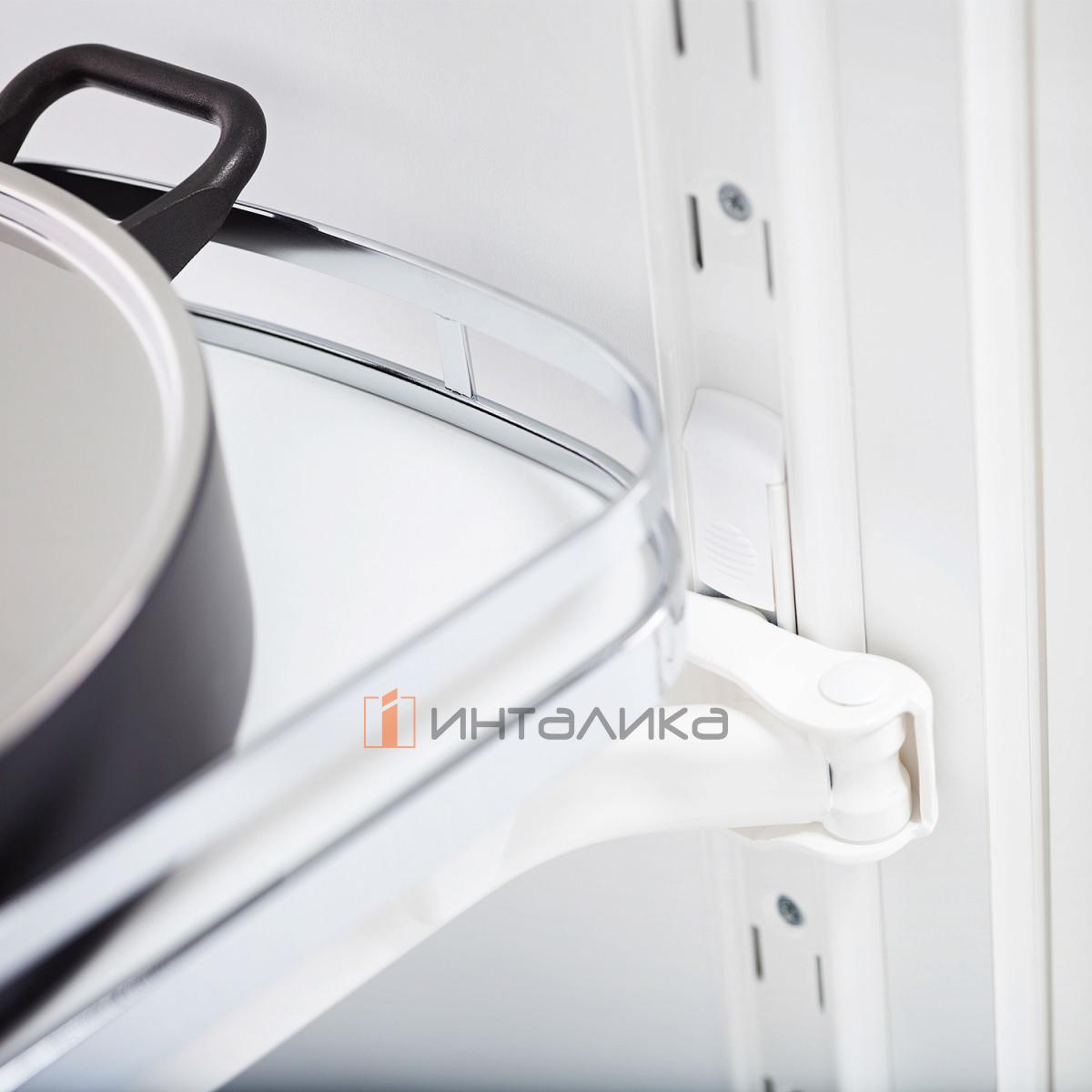 Поворотно-выдвижной механизм KESSEBOHMER Le Mans 600, 2 полки Arena style с доводчиками на закрывание, Anti-slip, H600-750мм, левый, белый/хром, 3579330005