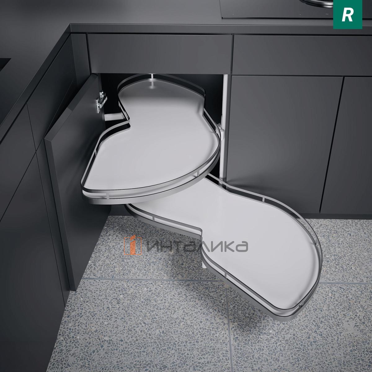 Поворотно-выдвижной механизм KESSEBOHMER Le Mans 600, 2 полки Arena style с доводчиками на закрывание, Anti-slip, H600-750мм, правый, белый/хром, 3579320005