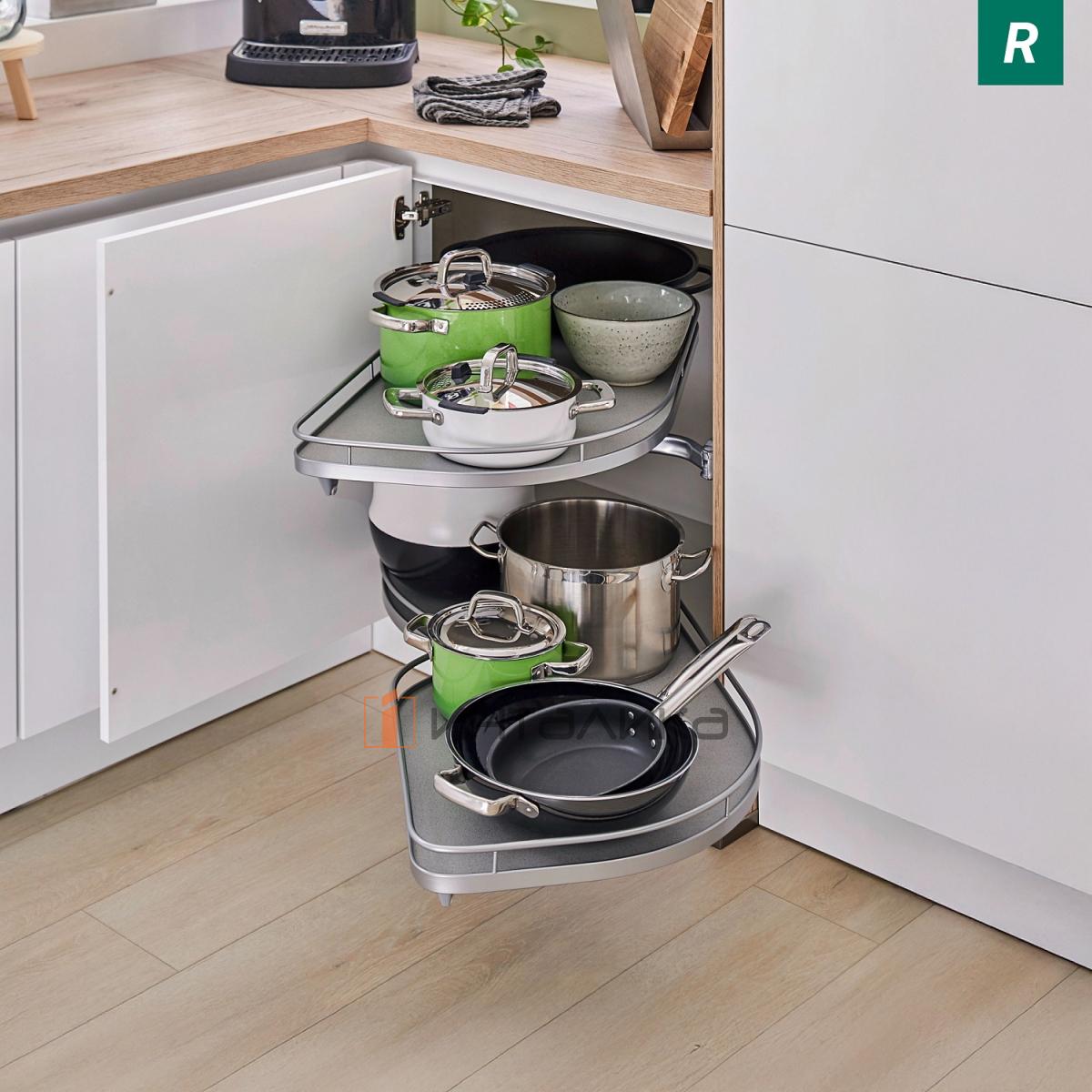 Поворотно-выдвижной механизм KESSEBOHMER Le Mans 450, 2 полки Arena classic с доводчиками на закрывание, Anti-slip, H720-900мм, правый, титан, 0499280102