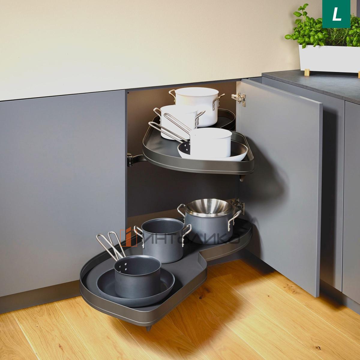 Поворотно-выдвижной механизм KESSEBOHMER Le Mans 400, 2 полки Arena pure с доводчиками на закрывание, Anti-slip, H720-900мм, левый, антрацит, 2989919846