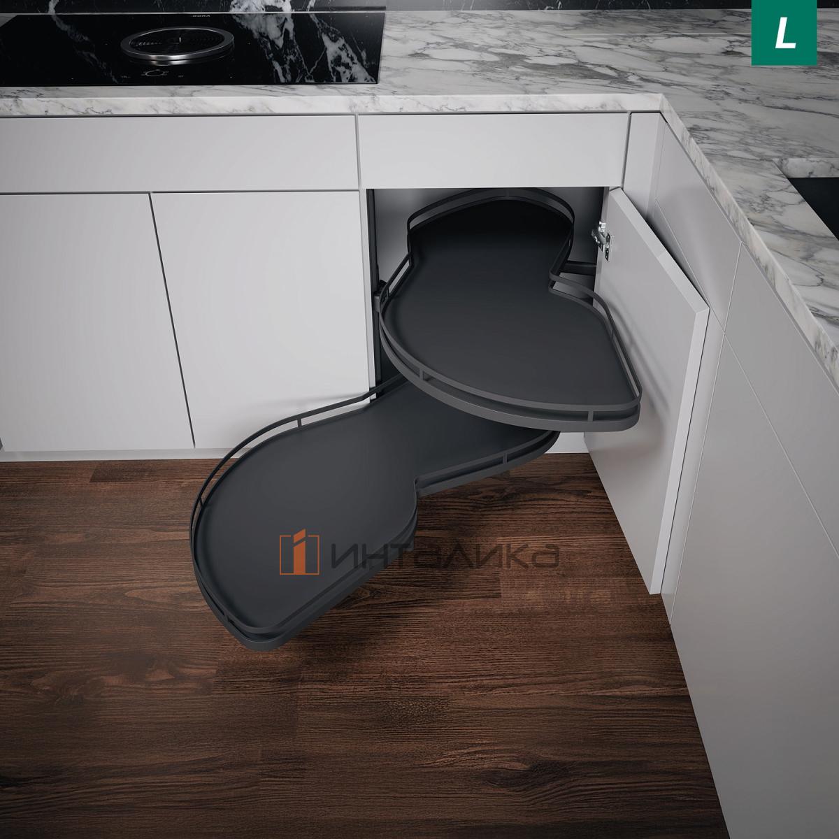 Поворотно-выдвижной механизм KESSEBOHMER Le Mans 450, 2 полки Arena style с доводчиками на закрывание, Anti-slip, H720-900мм, левый, антрацит, 0499759846