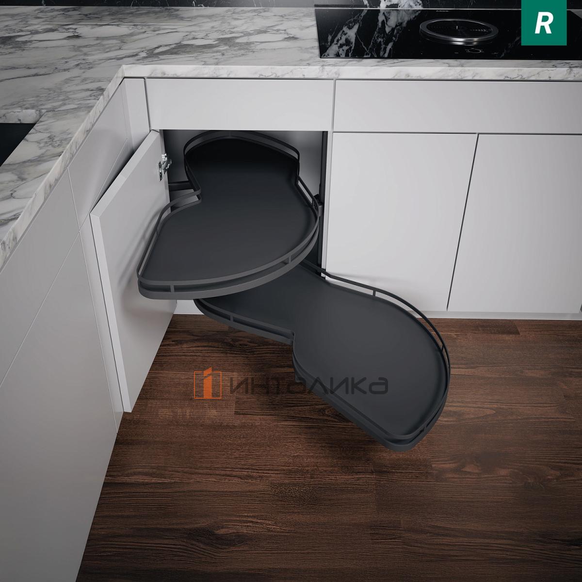 Поворотно-выдвижной механизм KESSEBOHMER Le Mans 450, 2 полки Arena style с доводчиками на закрывание, Anti-slip, H720-900мм, правый, антрацит, 0499749846
