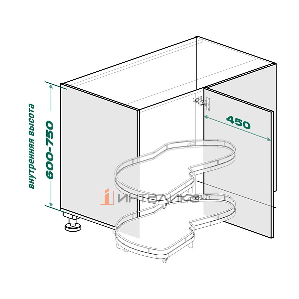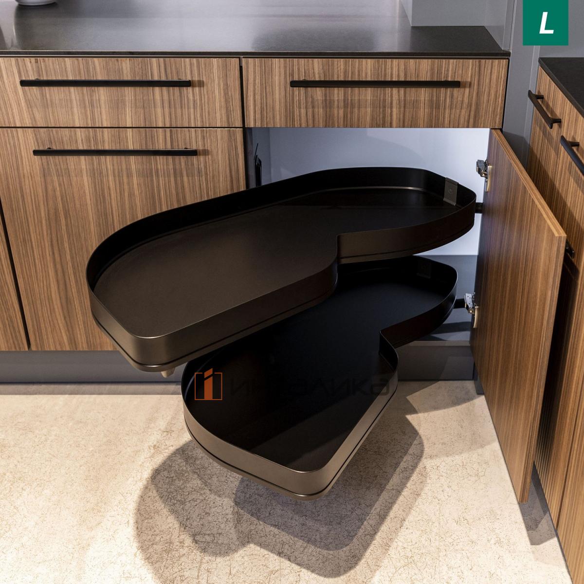 Поворотно-выдвижной механизм KESSEBOHMER Le Mans 450, 2 полки Arena pure с доводчиками на закрывание, Anti-slip, H600-750мм, левый, антрацит, 2905759846
