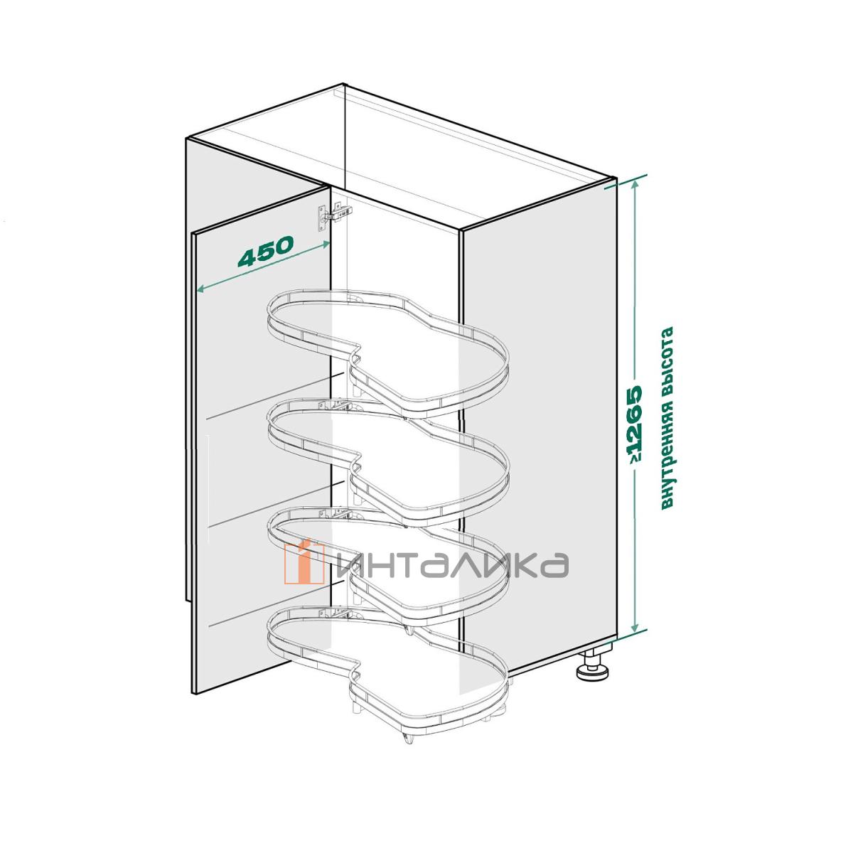 Поворотно-выдвижной механизм KESSEBOHMER Le Mans 450, 4 полки Arena pure с доводчиками на закрывание, Anti-slip, H1265мм, правый, антрацит, 2905809846