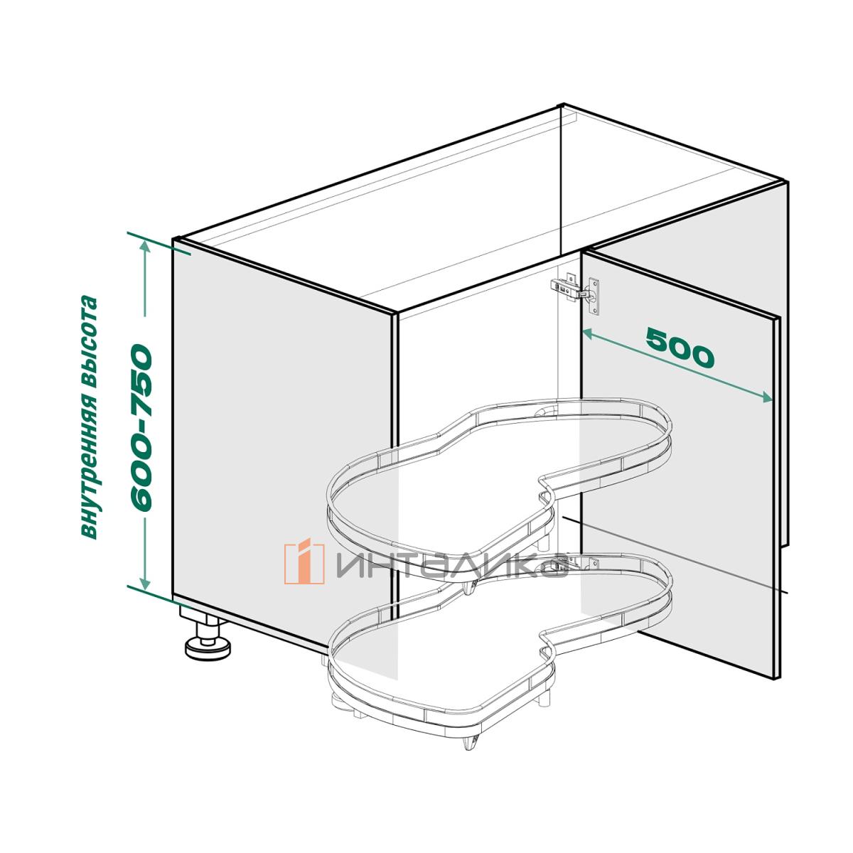 Поворотно-выдвижной механизм KESSEBOHMER Le Mans 500, 2 полки Arena pure с доводчиками на закрывание, Anti-slip, H600-750мм, левый, антрацит, 2905799846