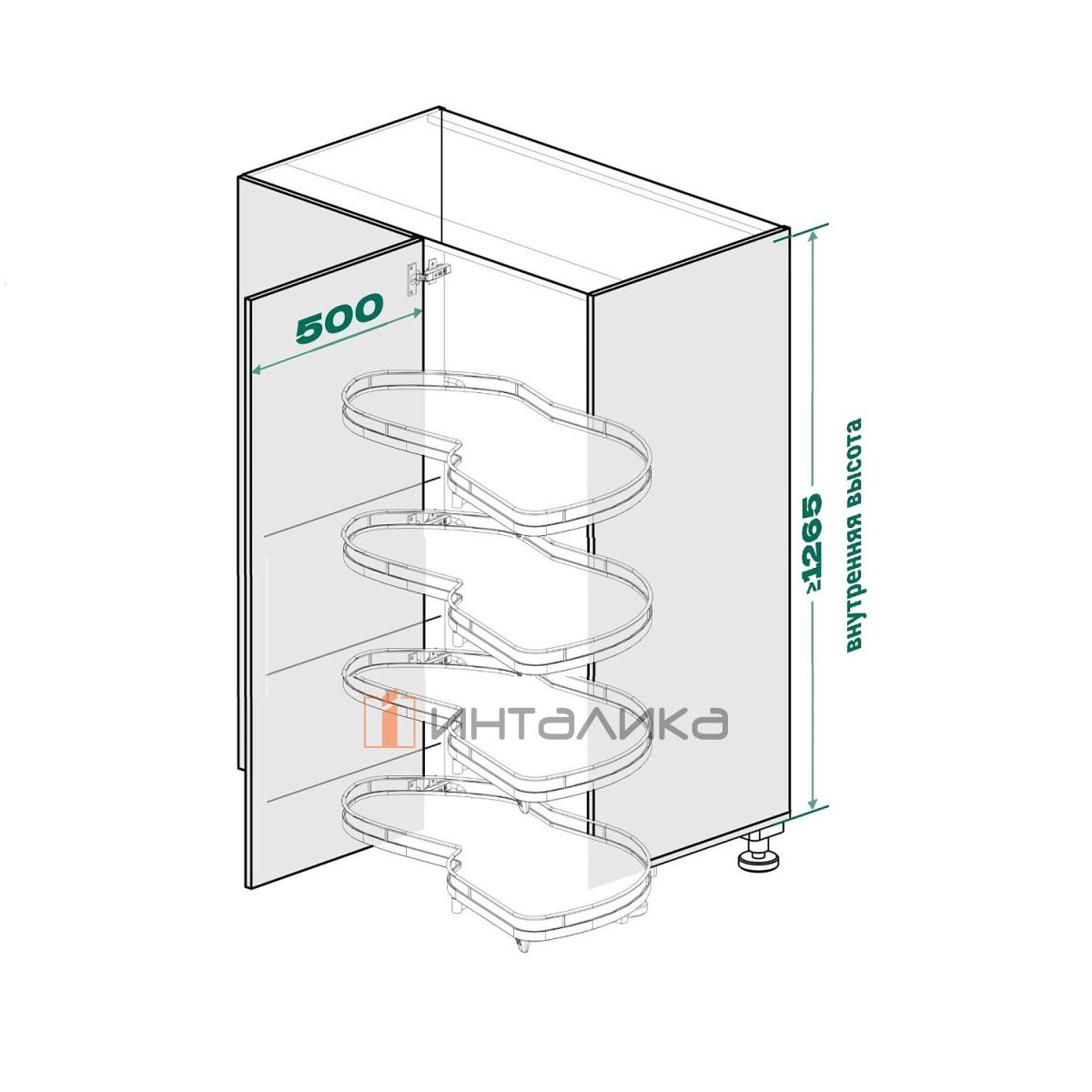Поворотно-выдвижной механизм KESSEBOHMER Le Mans 500, 4 полки Arena pure с доводчиками на закрывание, Anti-slip, H1265мм, правый, антрацит, 2905829846