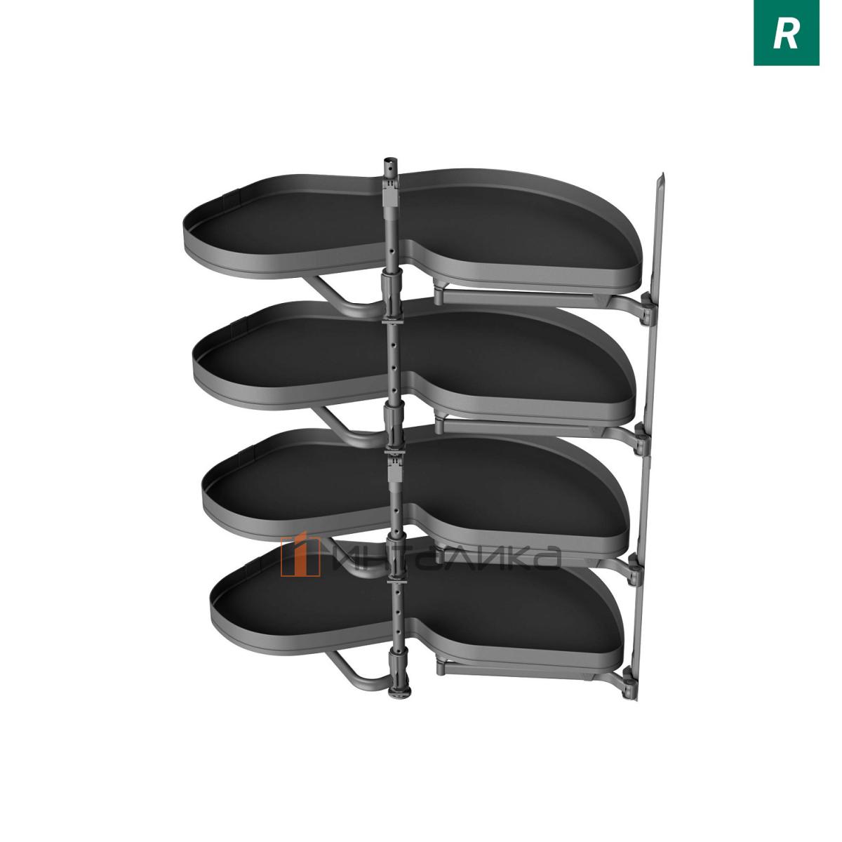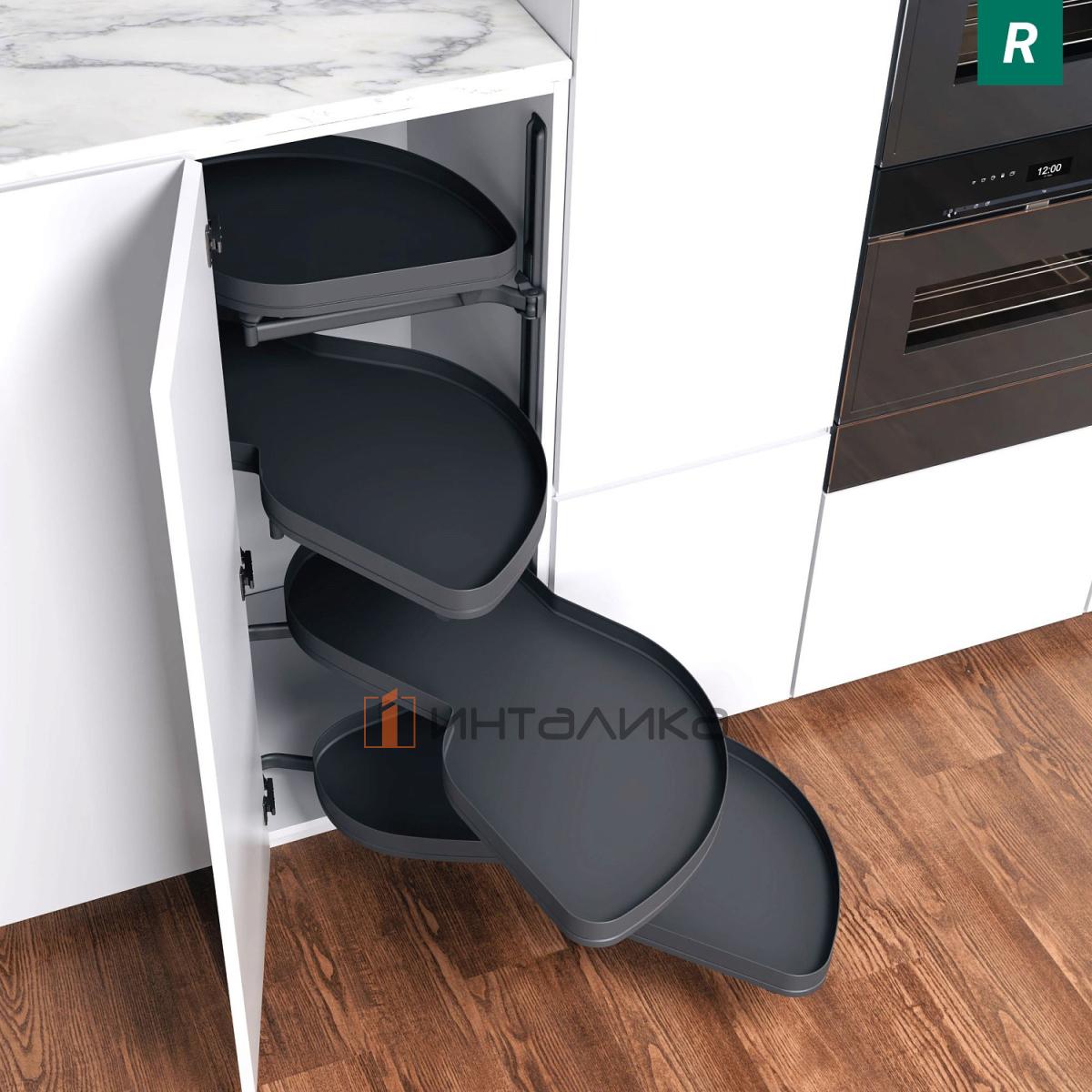 Поворотно-выдвижной механизм KESSEBOHMER Le Mans 600, 4 полки Arena pure с доводчиками на закрывание, Anti-slip, H1265мм, правый, антрацит, 2905849846