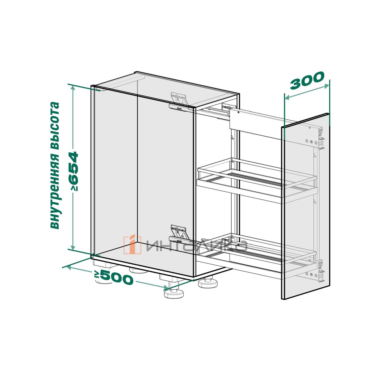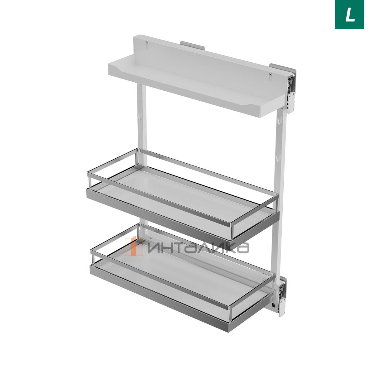 Выдвижной механизм KESSEBOHMER Comfort II, 300, 2 полки Arena style + полка для специй, Anti-slip, H654, левый, белый/хром, 3577140005