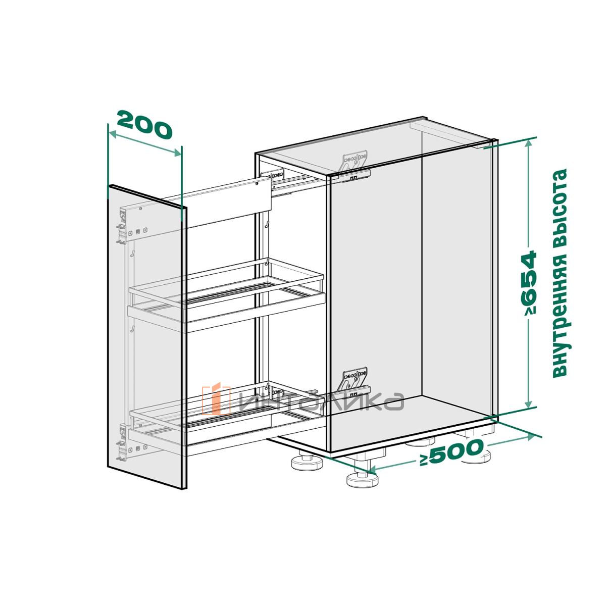 Минимальные внутренние габариты корпуса для установки системы Комфорт: высота - 654 мм, глубина - 496 мм