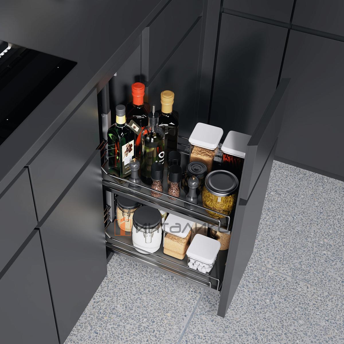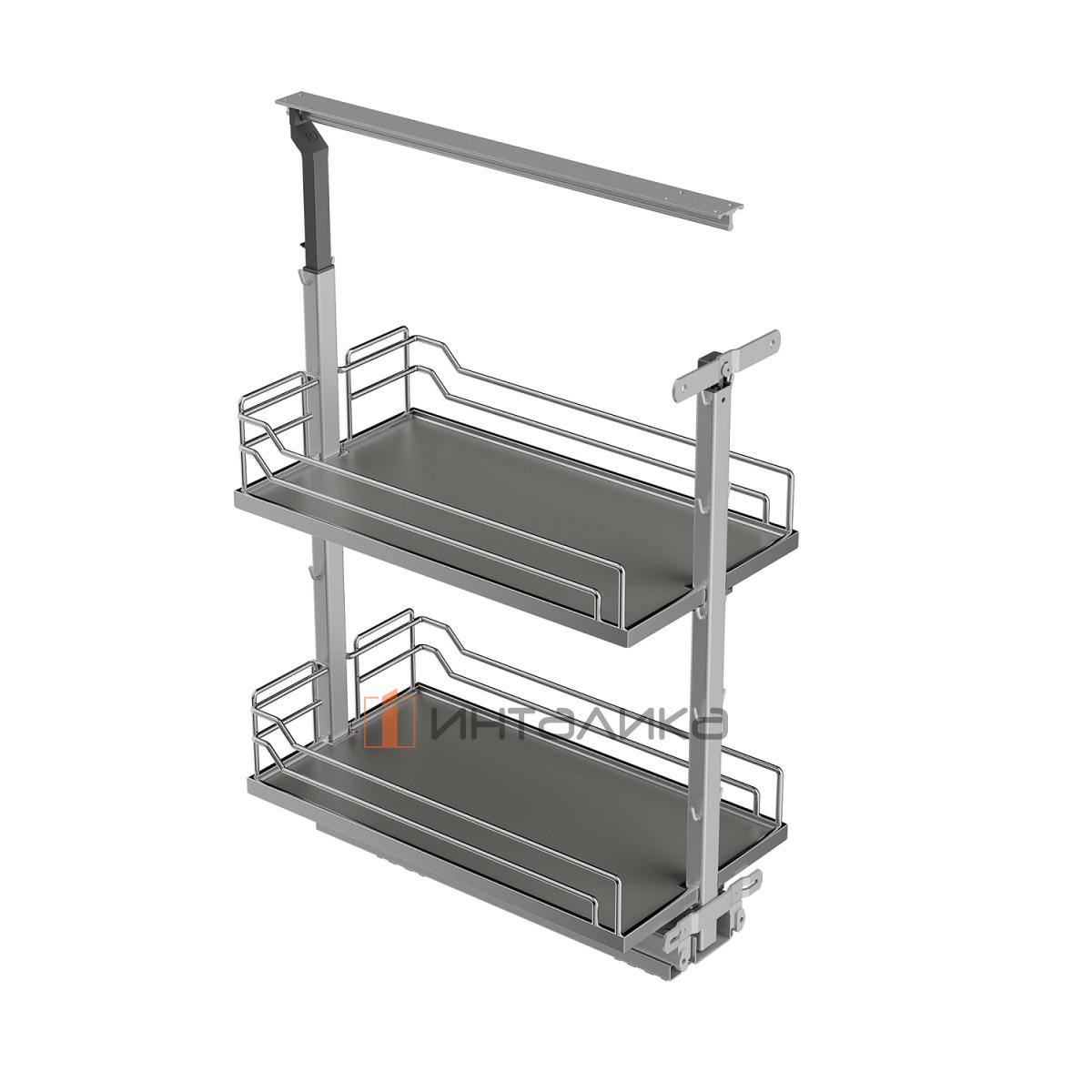 Выдвижной механизм KESSEBOHMER Dispensa Junior 400, 2 полки Arena classic с доводчиком на закрывание, Anti-slip, H695-783, хром, 2609320005