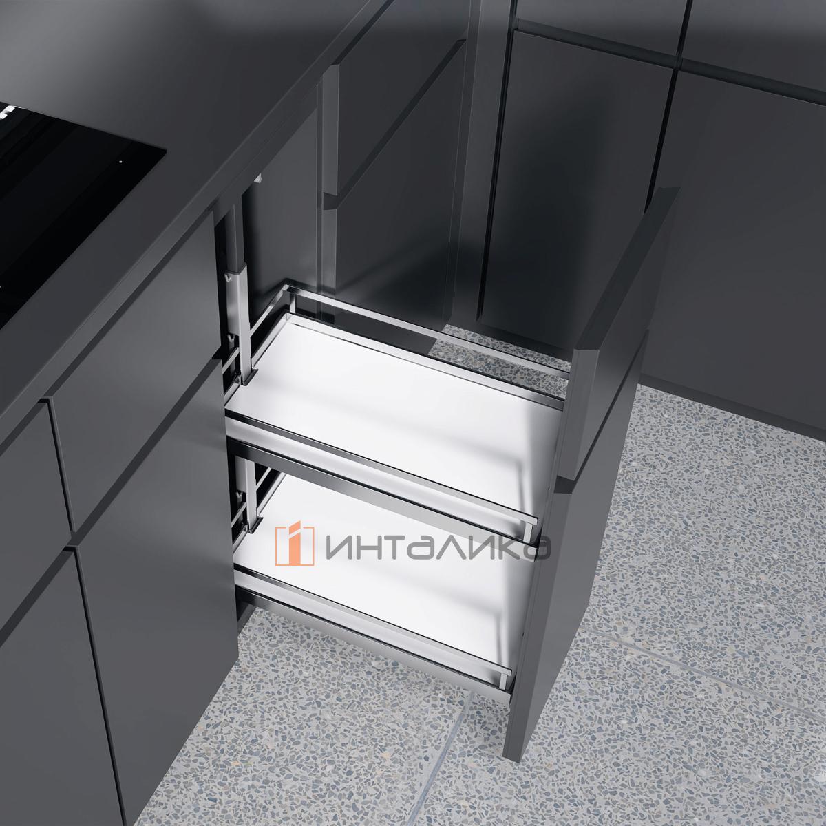 Выдвижной механизм KESSEBOHMER Dispensa Junior 200, 2 полки Arena style с доводчиком на закрывание, Anti-slip, H640-728, белый/хром, 3506300005