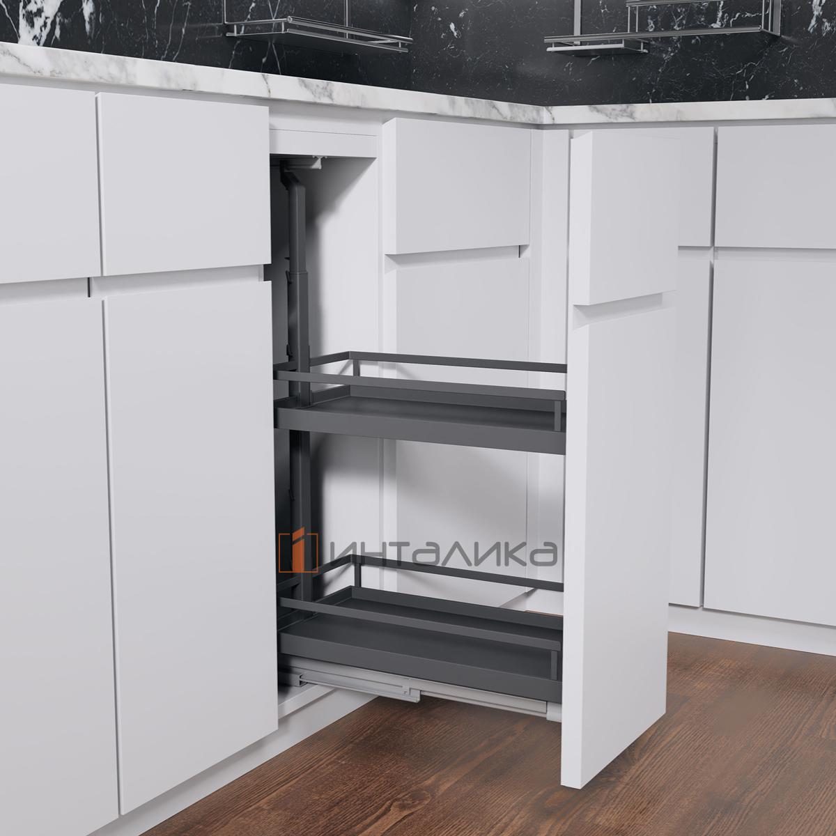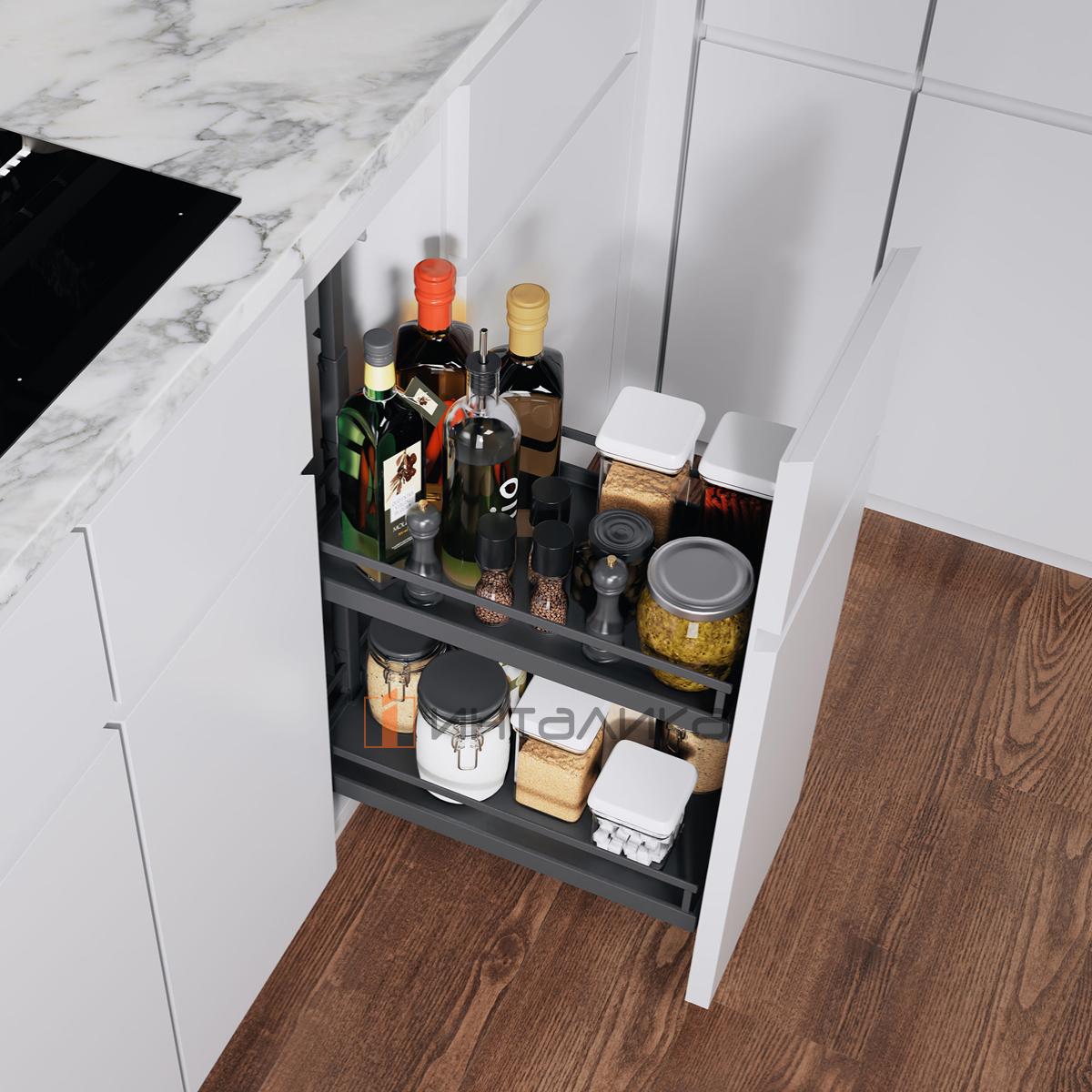 Выдвижной механизм KESSEBOHMER Dispensa Junior 200, 2 полки Arena style с доводчиком на закрывание, Anti-slip, H695-783, антрацит, 2609339846