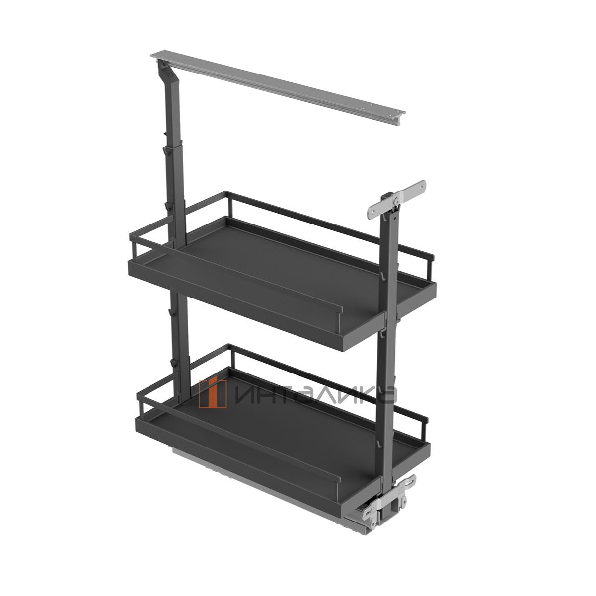 Выдвижной механизм KESSEBOHMER Dispensa Junior 400, 2 полки Arena style с доводчиком на закрывание, Anti-slip, H695-783, антрацит, 2609359846