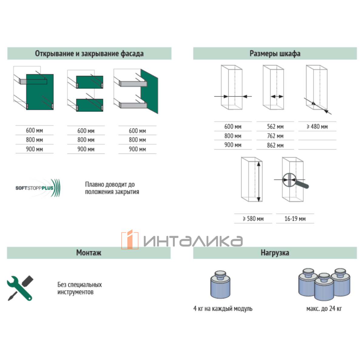 Направляющие полного выдвижения Soft-Stop Plus обеспечивают мягкую плавную доводку механизма при закрывании