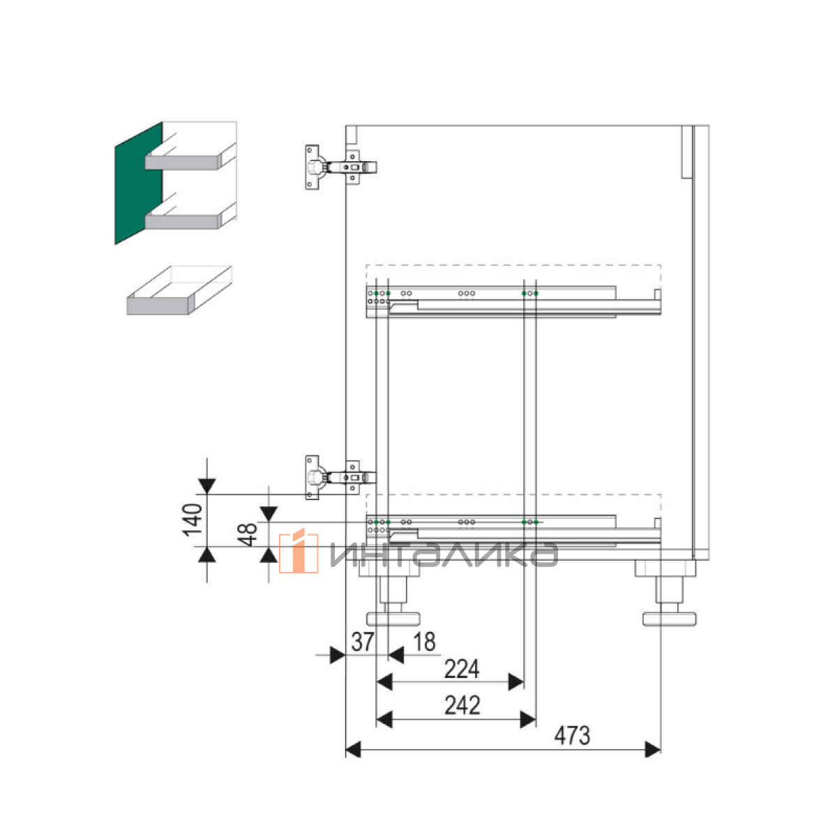 Предназначена для установки в нижние шкафы, обеспечивает удобное и безопасное хранение посуды