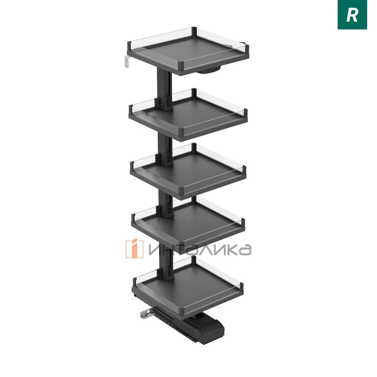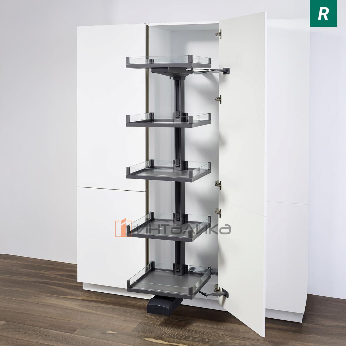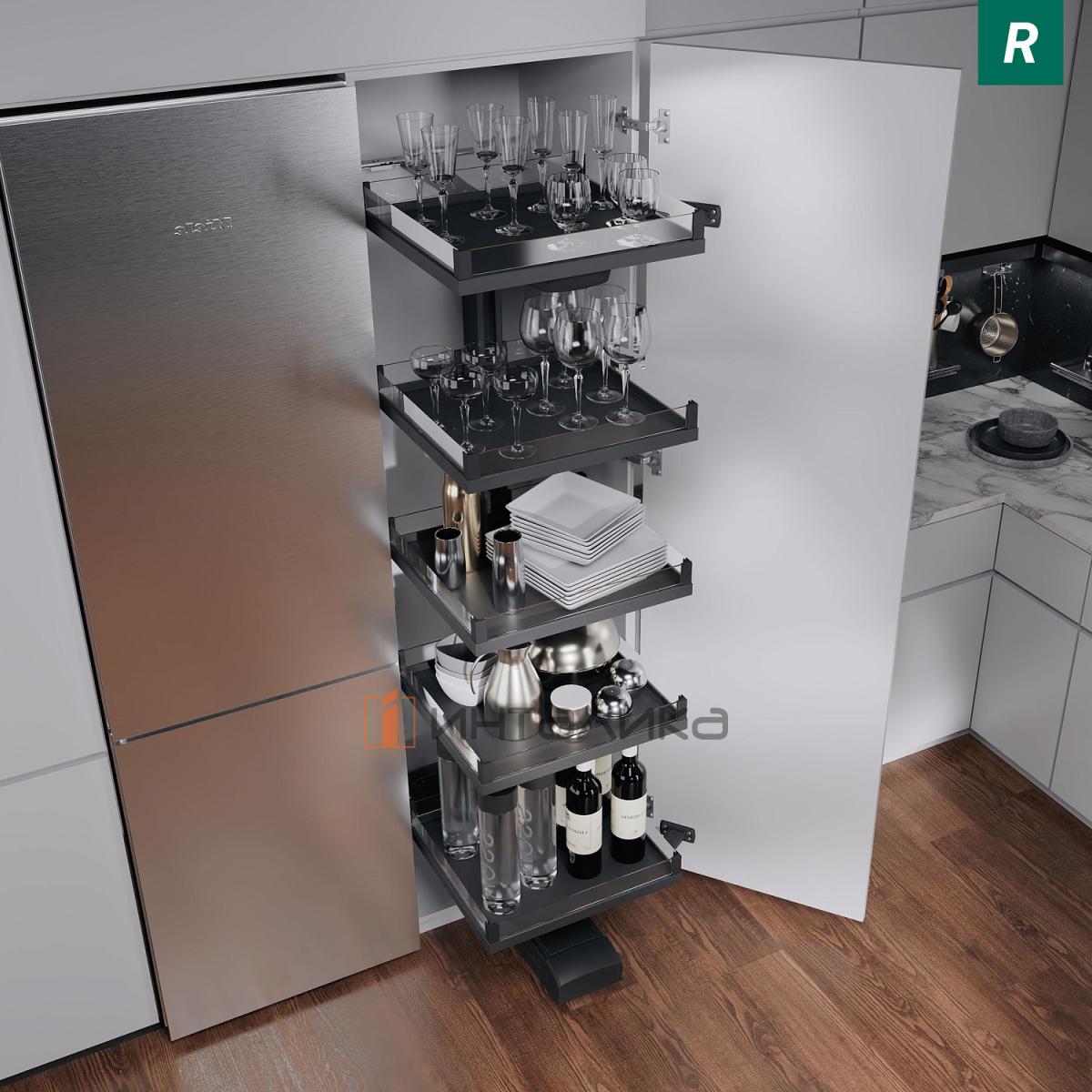 Выдвижной шкаф-колонна KESSEBOHMER Convoy Premio 600, 5 полок Arena vario, с доводчиком, полное выдвижение, Anti-slip, H1900-1999, правый, антрацит, 2816659846
