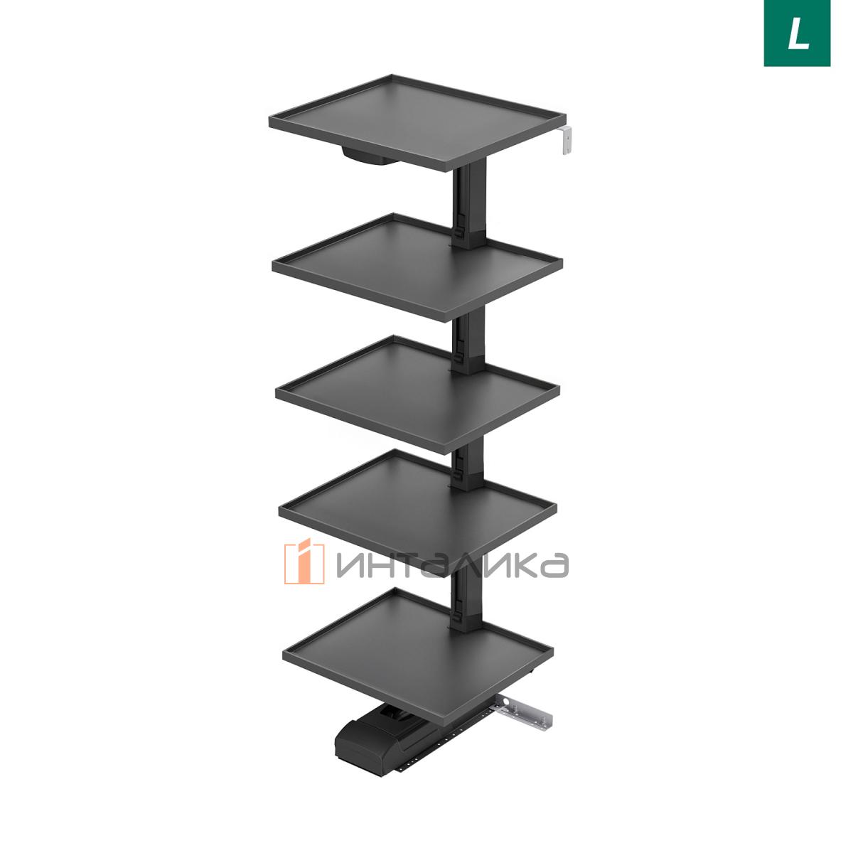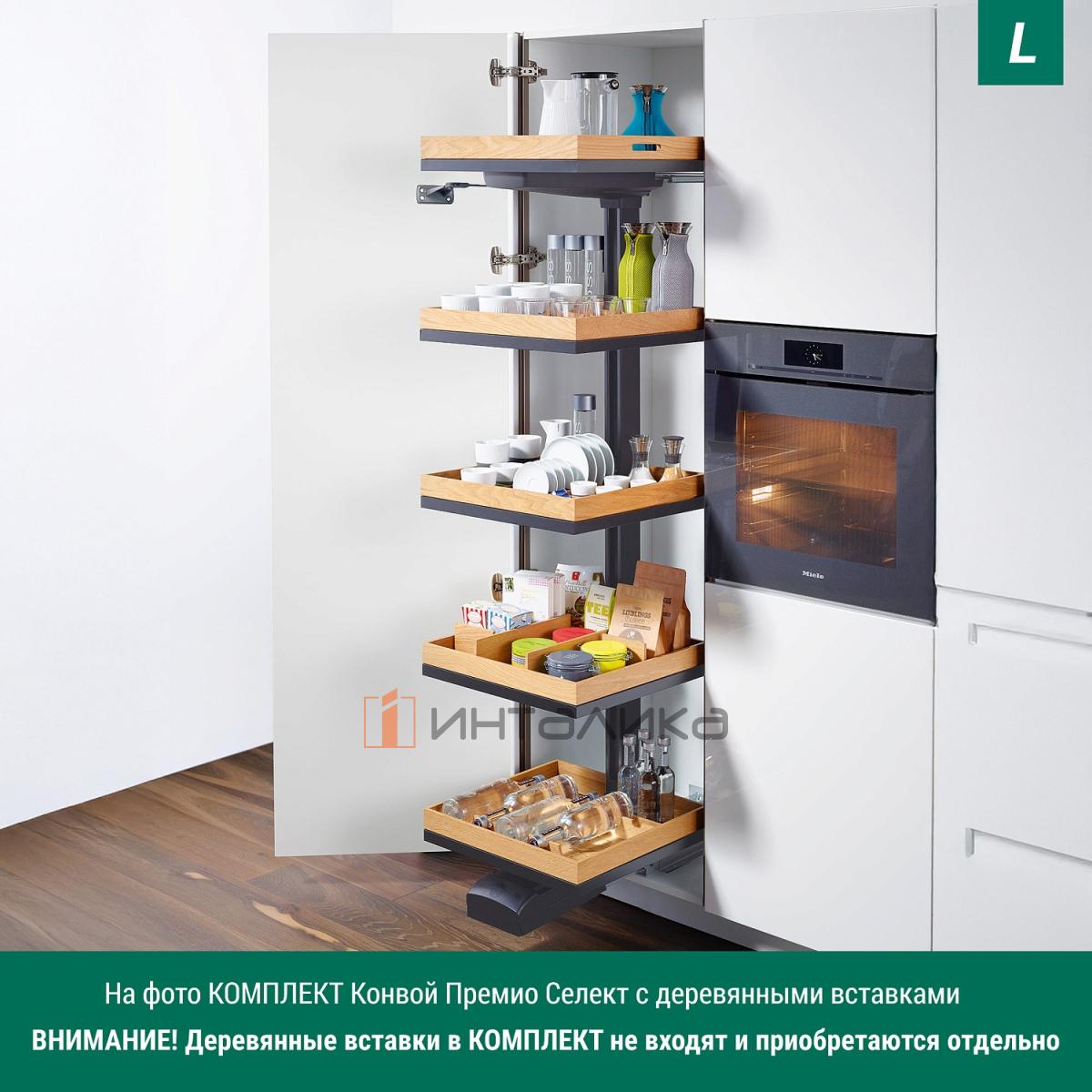 Выдвижной шкаф-колонна KESSEBOHMER Convoy Premio 600, 5 полок Arena select, с доводчиком, полное выдвижение, Anti-slip, H2100-2199, левый, антрацит, 2829779846