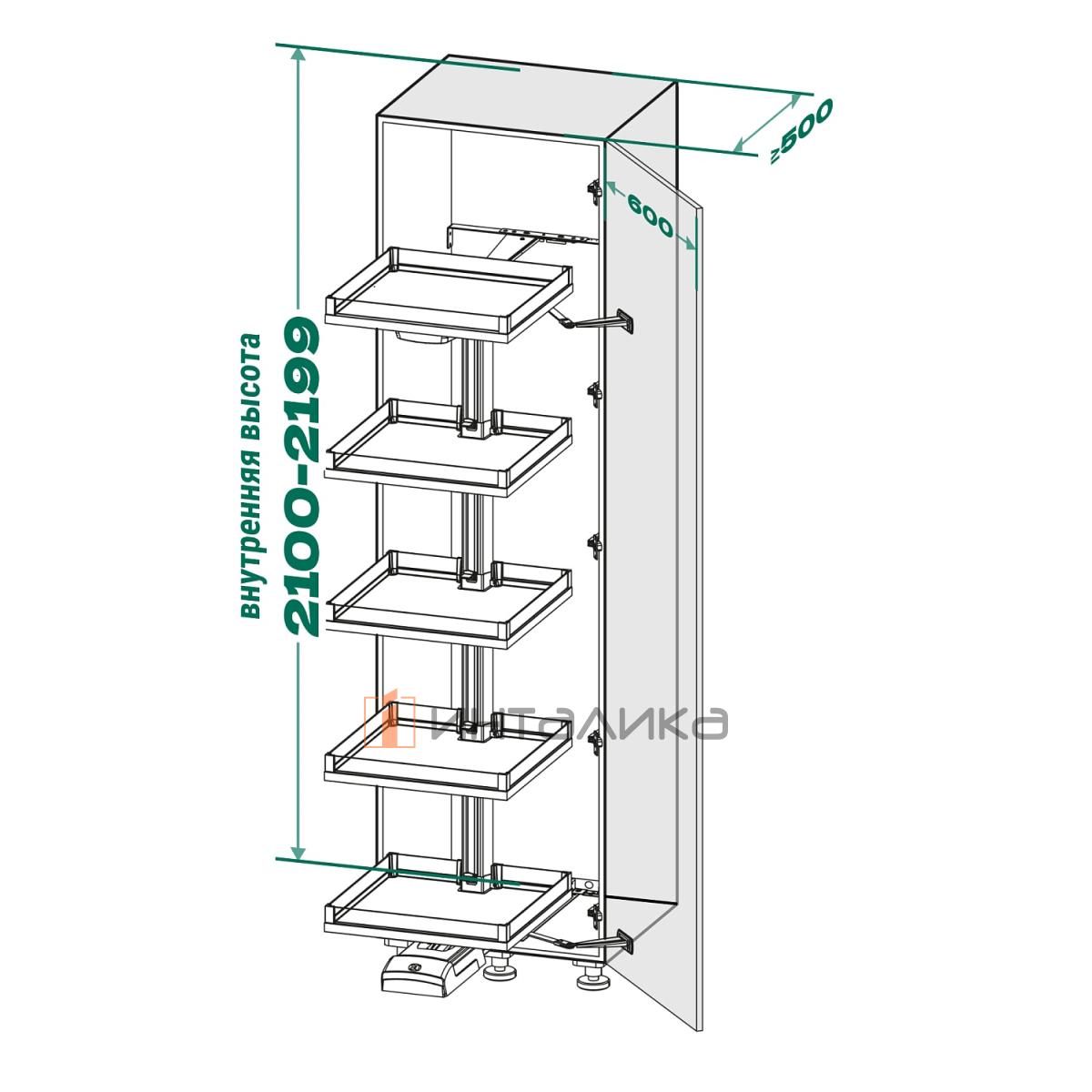 Выдвижной шкаф-колонна KESSEBOHMER Convoy Premio 600, 5 полок Arena select, с доводчиком, полное выдвижение, Anti-slip, H2100-2199, правый, антрацит, 2819779846